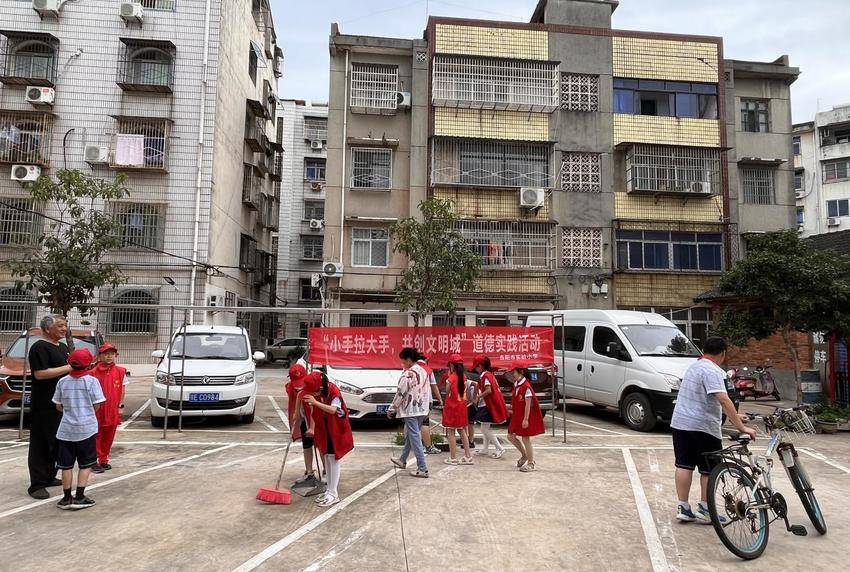 湖北日报客户端讯(通讯员 陈夏筱)6月19日,当阳市实验小学组织部分家长和学生志愿者走出校园,走进社区,开展“小手拉大手 共创文明城”道德实践活动。