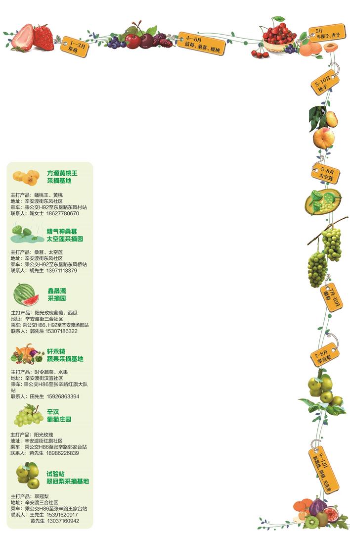 2月和3月尽享草莓、4月的蓝莓和桑葚只管采摘、5月的枇杷和西瓜熟了、6月的桃子水灵灵,眼下甜瓜、梨、葡萄、太空莲正在“接力”上市。