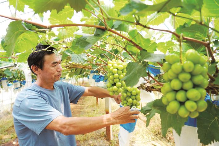 农产品做成精品,才能卖得好、增效益,辛安渡街三合社区葡萄种植户郭国红对此也深有感触,他从湖南澧县学回来葡萄种植技术,他的葡萄在商超团购中十分受欢迎。