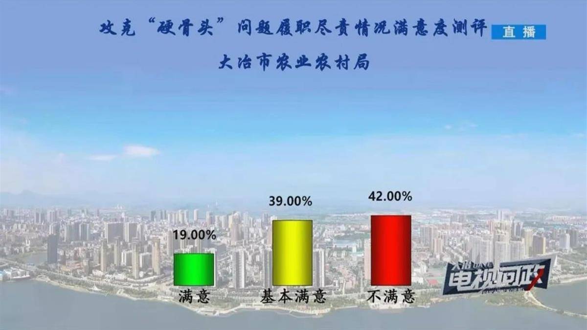 现场评议团就问政对象的现场表现进行投票,投票结果显示:满意19%,基本满意39%,不满意42%。
