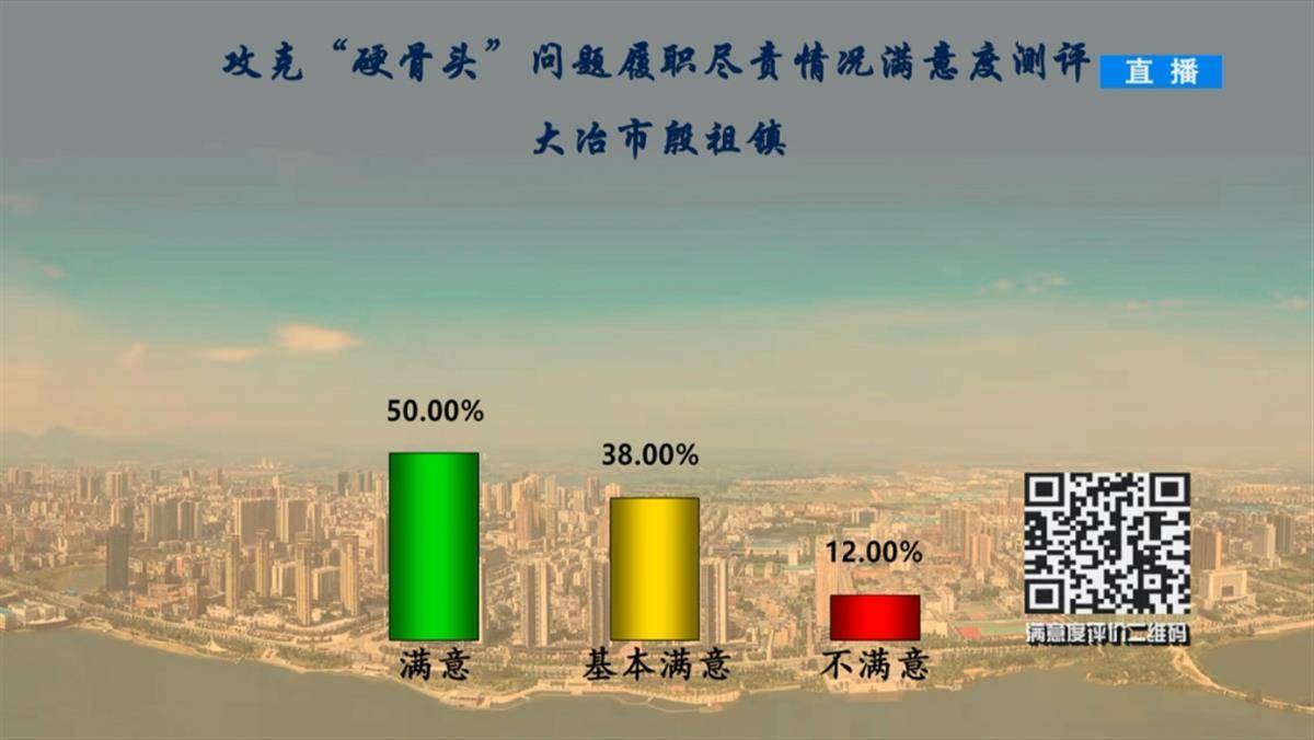 现场评议团对殷祖镇履职尽责情况投票结果显示:满意50%,基本满意38%,不满意12%。