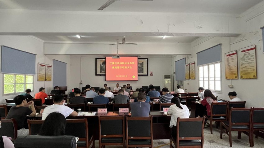 为深入推进党风廉政建设,筑牢党员干部防腐拒变的思想底线,近日,江夏区供销社召开全系统廉政警示教育大会。会议传达学习湖北省纪委监委通报的5起供销社系统违纪违法典型案例,集中观看了武汉市纪委监委制作的警示教育片《异化的情感》。