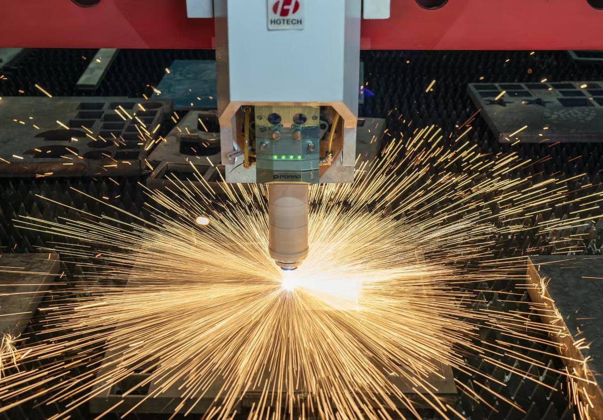 华工科技激光切割机正在切割钢板