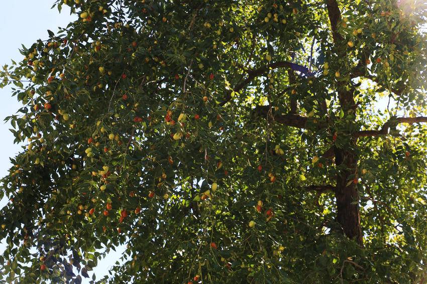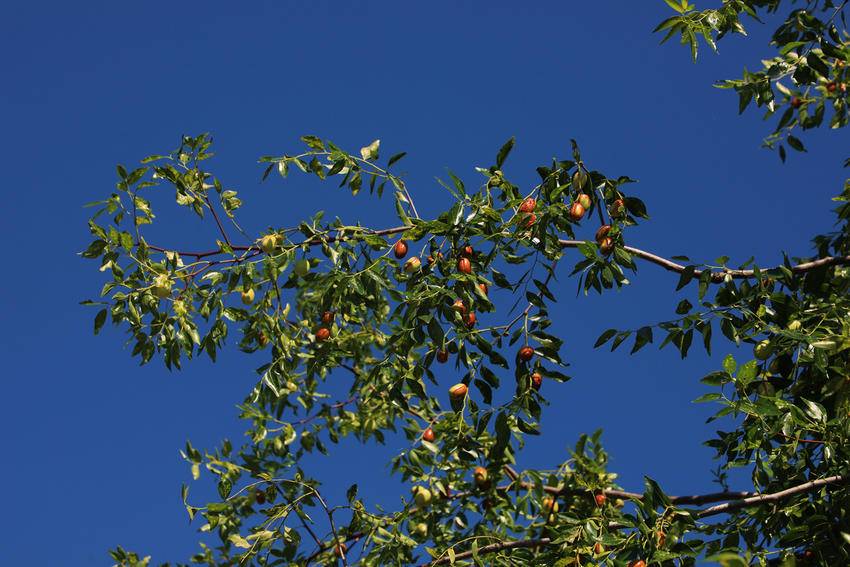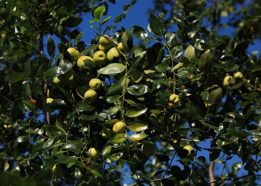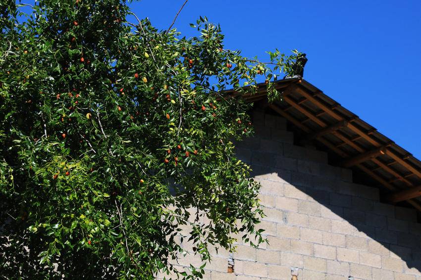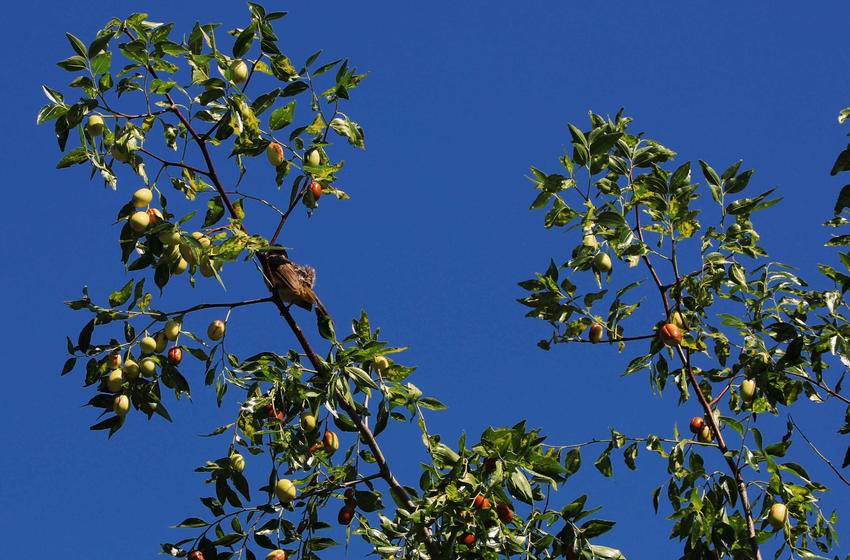 农家的枣子熟了,乡村弥漫着枣香。一只小鸟飞过来,落在枣树枝上。小鸟两脚还没站稳,忽然发现树下有人,一展翅,飞走了,消失在秋日的蓝天下,不见了踪影。