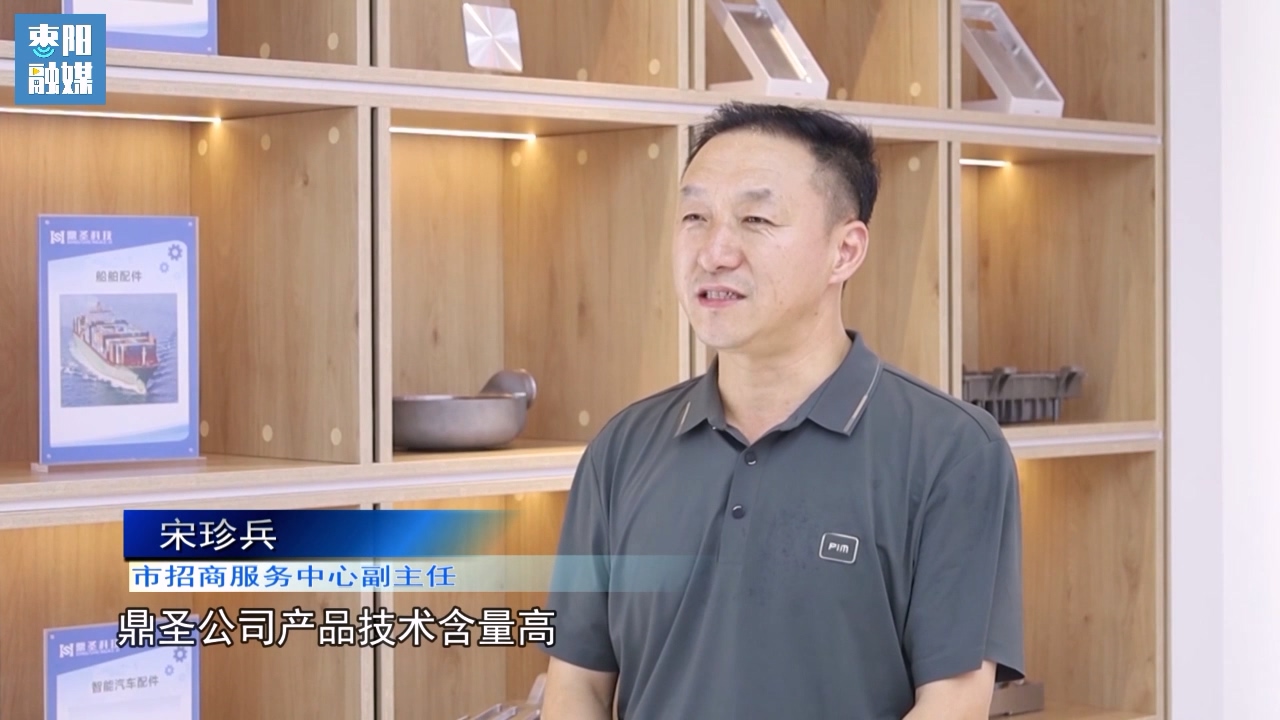 枣阳市招商服务中心副主任宋珍兵:“鼎圣公司产品技术含量高、市场前景广,带动能力强,能够带动枣阳的电子信息产业和高端装备制造产业快速发展,所以政府决定用(产业)基金的方式跟投。一期政府跟投1.05亿(元), 促进企业快速发展。”