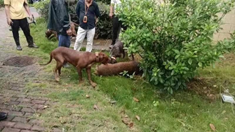 民警以驱离的方式让野猪回归自然,但野猪受惊后,到处乱撞,并攻击附近人员,对人民群众生命安全造成严重威胁,情急之下民警拉起警戒线,在猎犬的牵制下由特警队员将野猪一枪击毙,现场无人员受伤。森林支队按照相关规定,对野猪尸体进行无害化处理。
