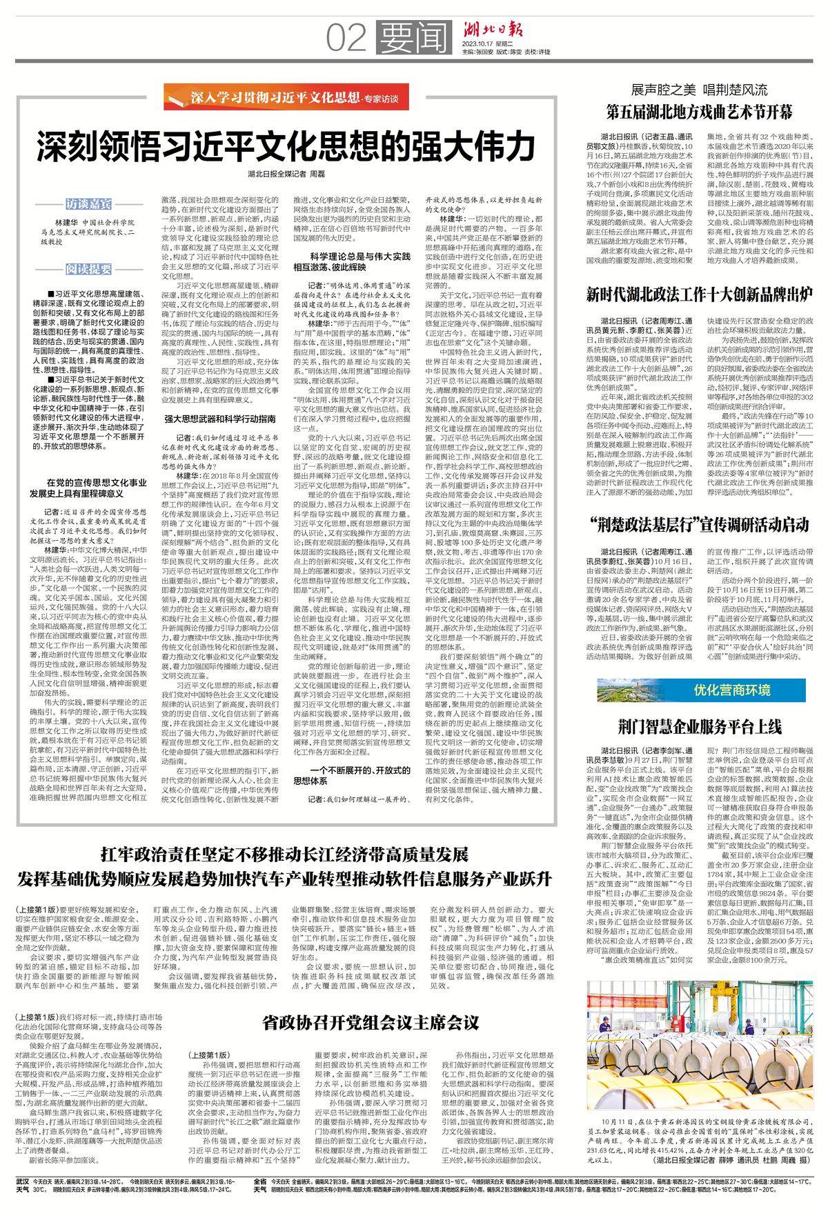 林建华:一切划时代的理论,都是满足时代需要的产物。一百多年来,中国共产党正是在不断攀登新的思想高峰中开拓通向真理的道路,在实践创造中进行文化创造,在历史进步中实现文化进步。习近平文化思想就是随着实践深入不断丰富发展完善的。
