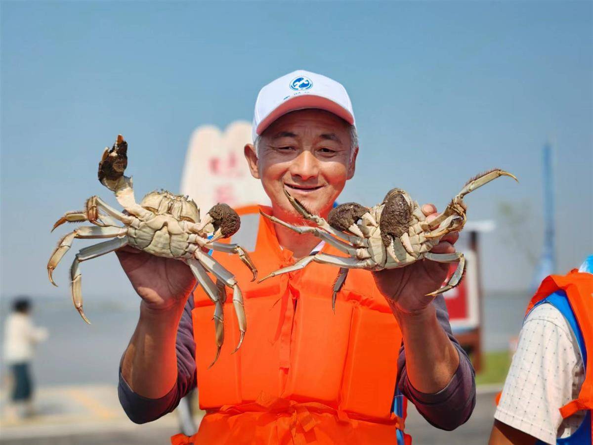 “开捕!”当天上午,首批8艘捕蟹船闻令而动,驶向陆逊湖中央开始捕捞,经过激烈角逐,船队个个满载而归。经现场称重,“蟹王”重8.8两、“蟹后”重7.2两,这两只螃蟹以8888元的拍卖价格成交。