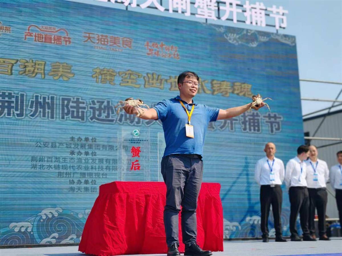 湖北日报讯(记者彭磊、王丙全、通讯员王文初)金秋时节,鱼肥蟹美。10月18日,2023湖北·荆州陆逊湖大闸蟹开捕节在公安县启幕,现场选出的“蟹王”加“蟹后”拍出8888元的高价。