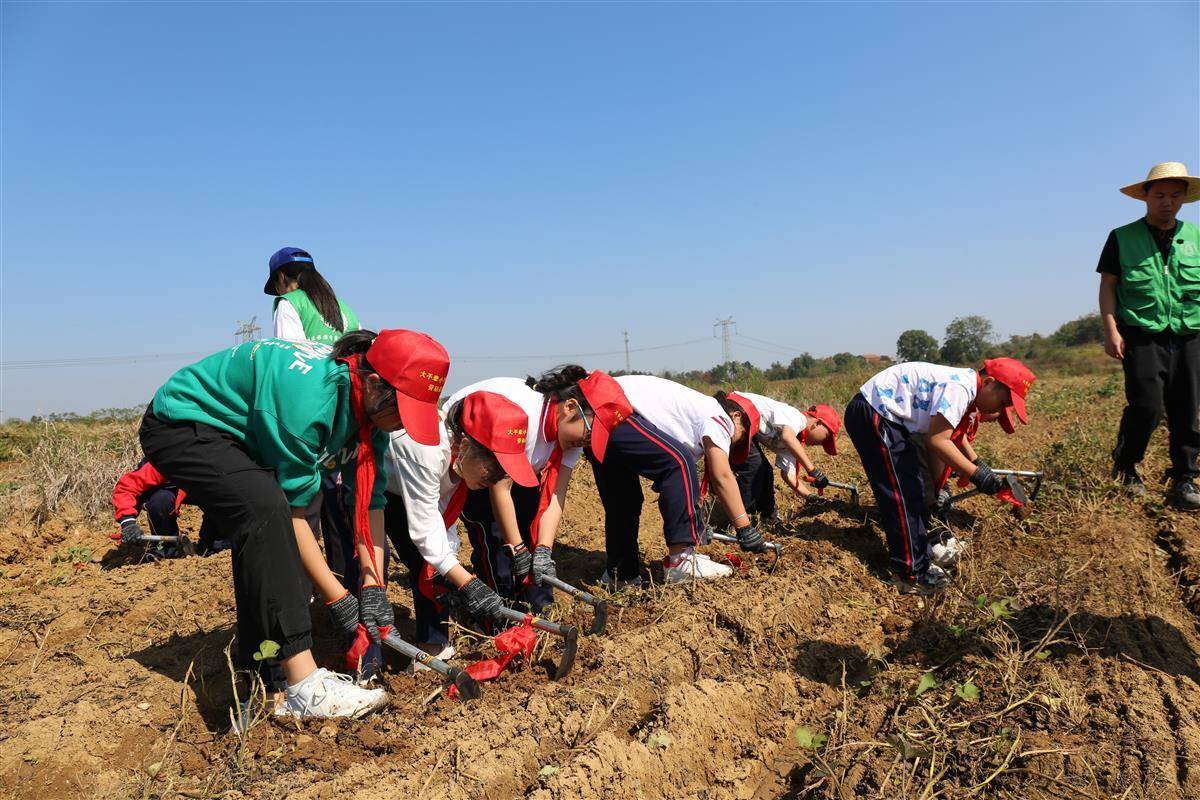 割稻谷、挖红薯、种蔬菜……10月23日,红安县觅儿寺镇李家畈村、尚古山村、普安桥村,迎来了一群特殊的劳动者——100多名大学生和小学生。