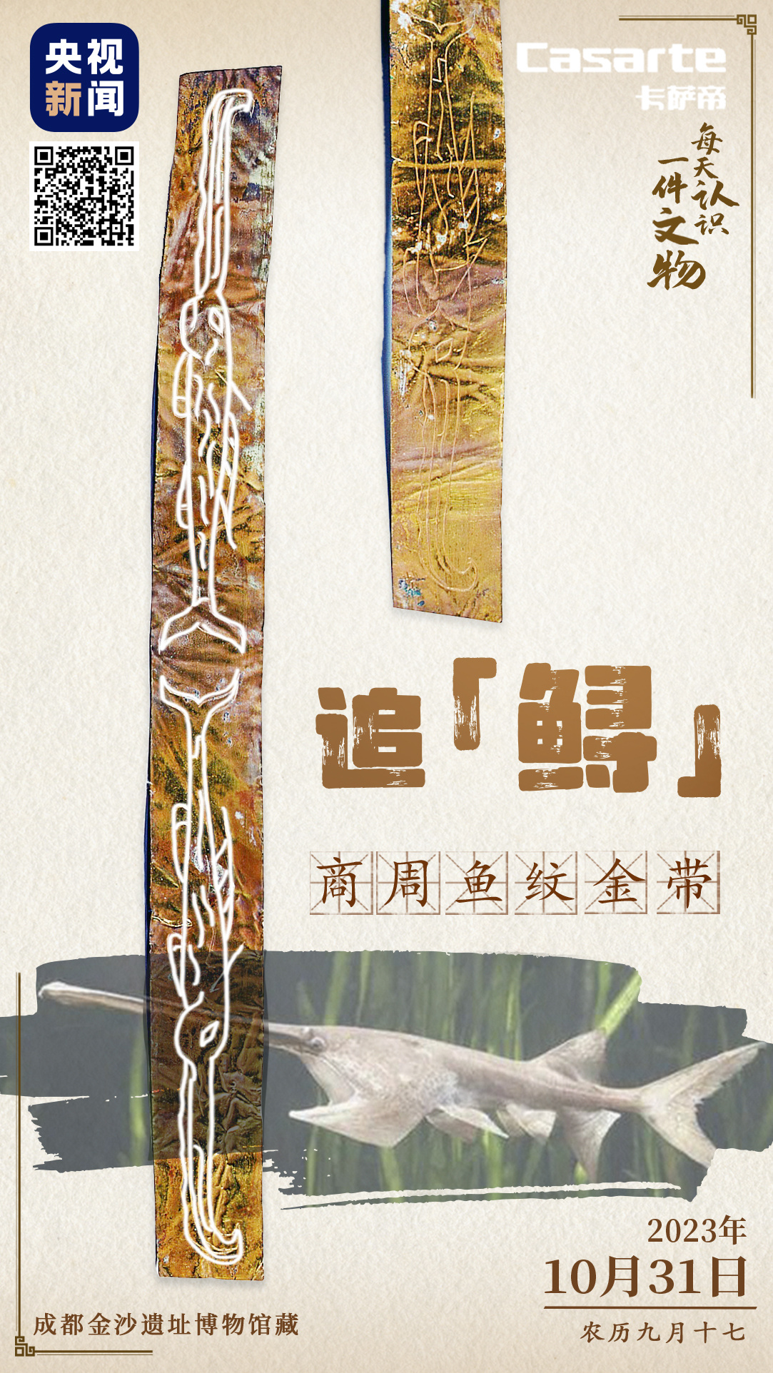 两条金带刻画着四条怪鱼鱼纹竟是长江白鲟
