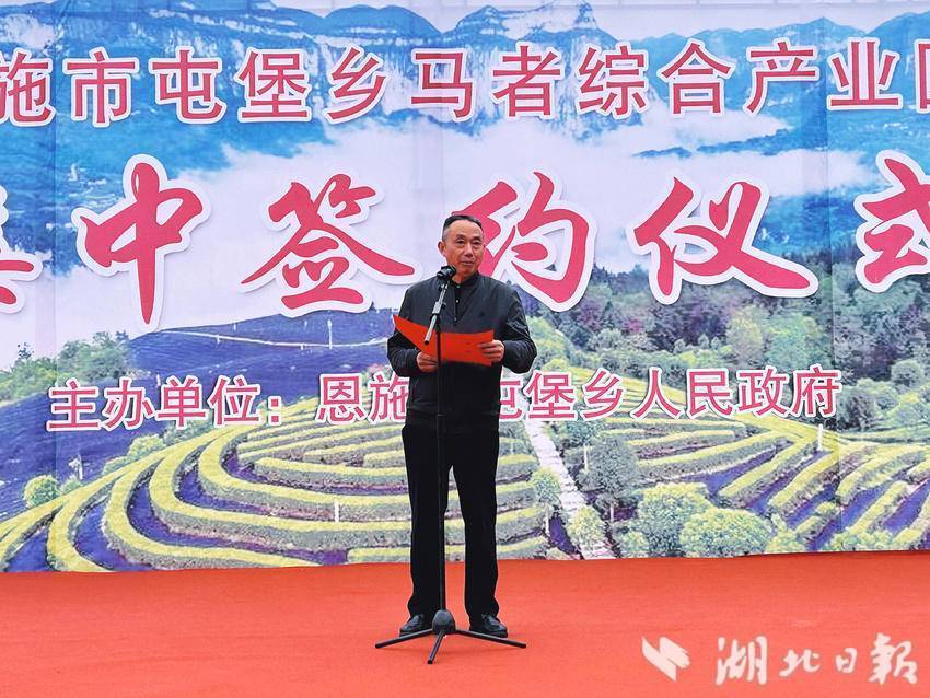 仪式现场,乡政府分别与恩施市凯迪克富硒茶业有限公司、湖北仙芝堂生物科技有限公司、恩施州悠鼎茶业有限公司、恩施爱森农业有限公司签订了招商合同。政企双方本着“加强协作、优势互补、互相支持、共谋发展”的精神,以屯堡乡马者综合产业加工园为平台,达成了合作共识。