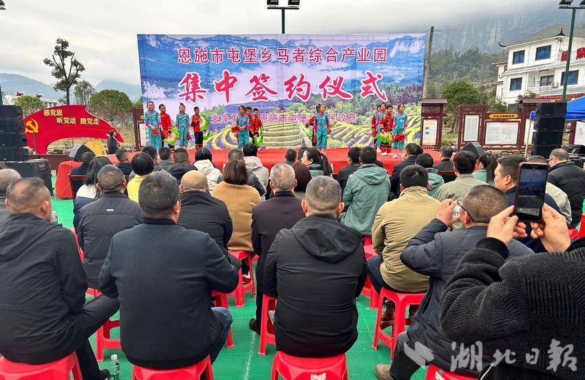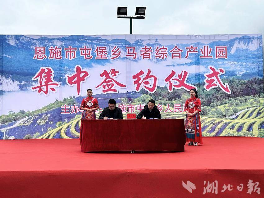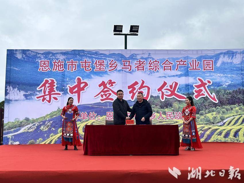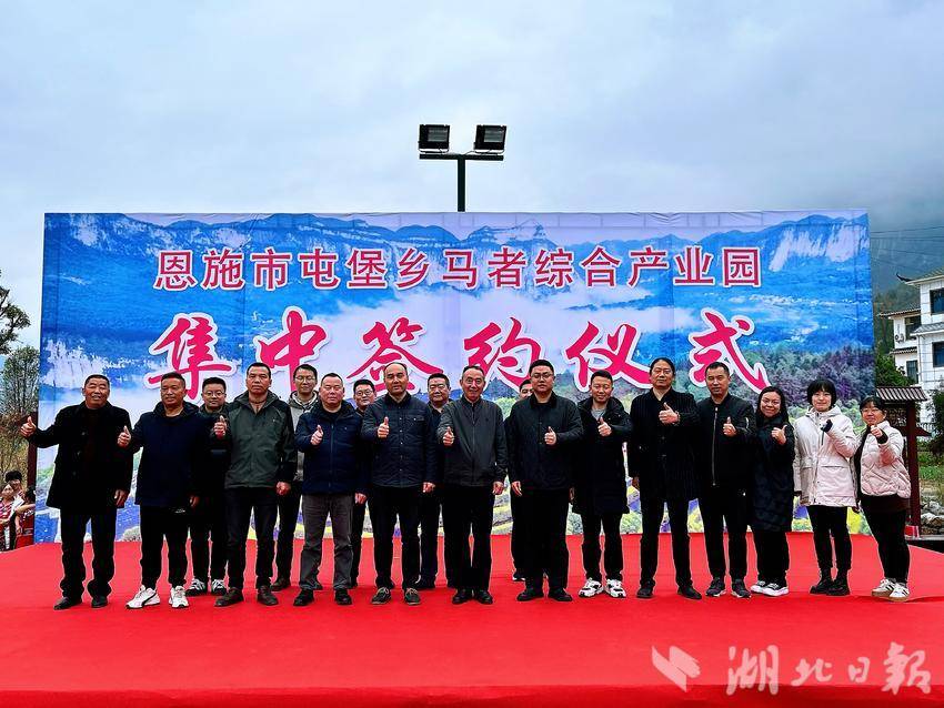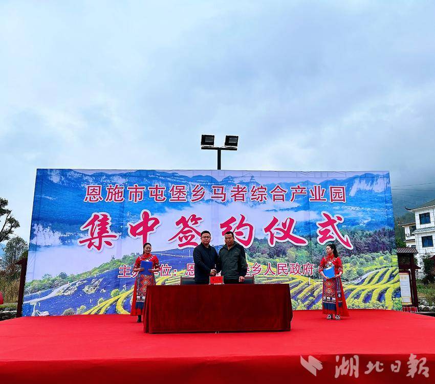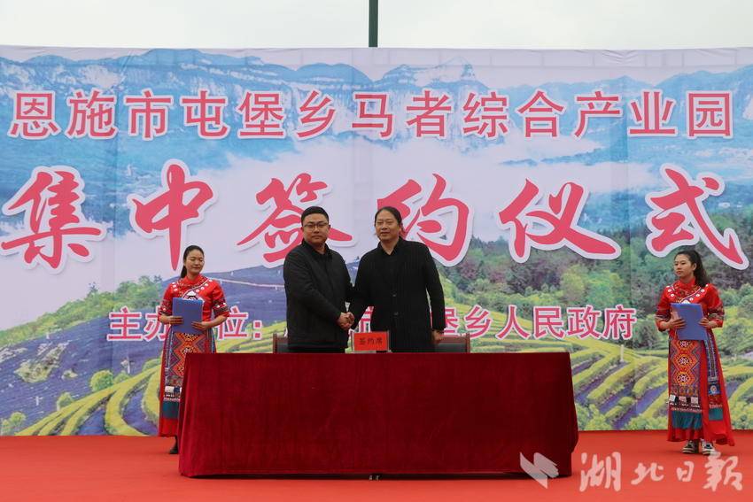 湖北日报客户端讯(通讯员 黄春燕)11月14日,恩施市屯堡乡举行马者综合产业加工园招商引资集中签约仪式。第一批拟入驻的4家优质企业与屯堡乡人民政府集中签署招商合同。恩施市人大常委会党组成员、副主任万亨东出席,屯堡乡党政班子成员,省政府办公厅驻村工作队,乡直单位和内设办公室负责人,马者村尖刀班全体成员,拟入驻企业负责人参加签约仪式。