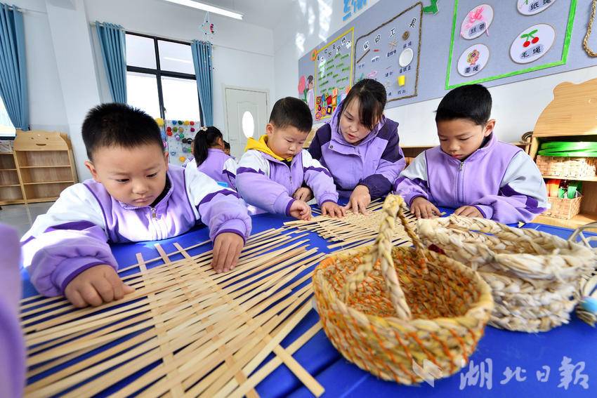 “我非常喜欢到编织室玩儿,我用竹条编了篓子,我编得很好,老师表扬了我。”歇马镇中心幼儿园幼儿曾俊杰高兴地说。