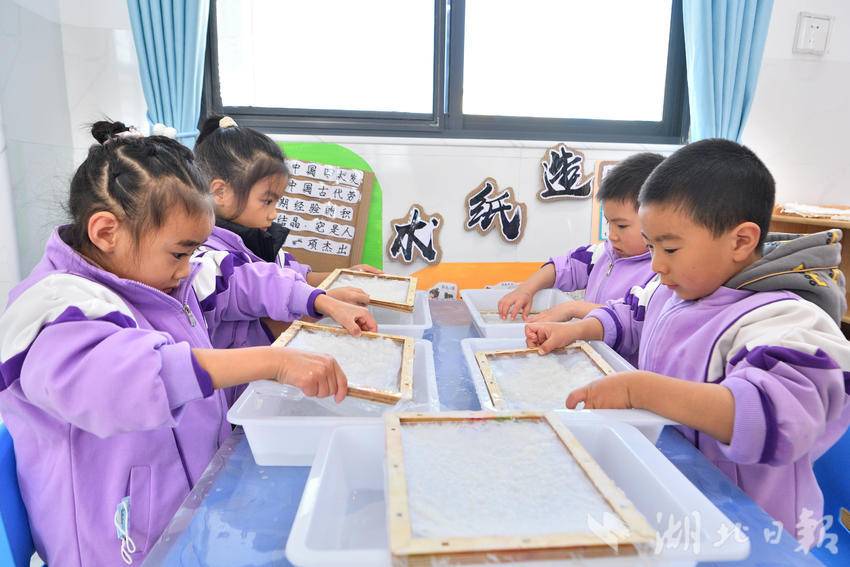 绘本阅读馆为孩子们提供了安静温馨的阅读环境,让孩子们遨游在知识的海洋中,感受书籍的魅力。同时,结合传统工艺,帮助孩子们了解造纸术和印刷术,提高对“纸”的兴趣,让孩子们在自由、自主、自发的“玩纸”过程中提升认知能力。
