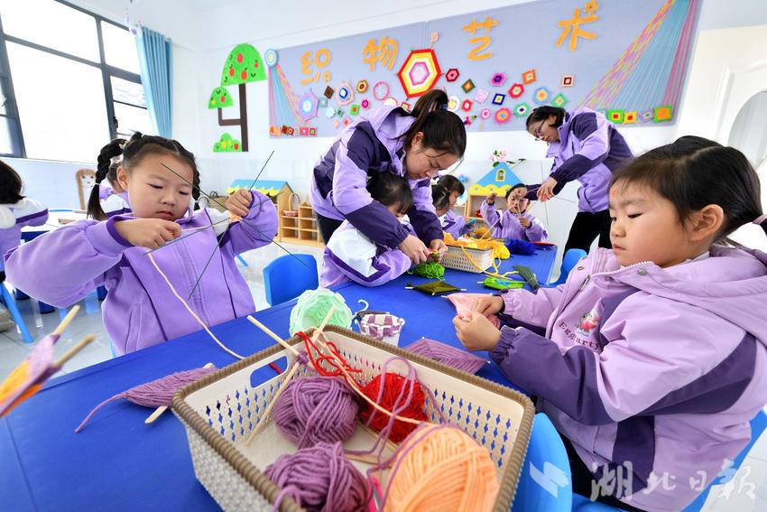“我们以身边触手可及的材料为依托,遵循儿童需要和兴趣规律,在丰富多彩的活动中,通过穿插、缠绕、打结等方法编制出充满童趣的作品,促进幼儿观察、动手、思维等能力的发展。”歇马镇中心幼儿园教师韩永梅介绍说。
