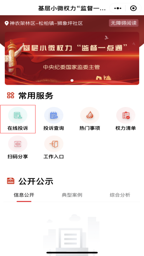 群众用户点击在线投诉功能标识方可进行在线投诉。
