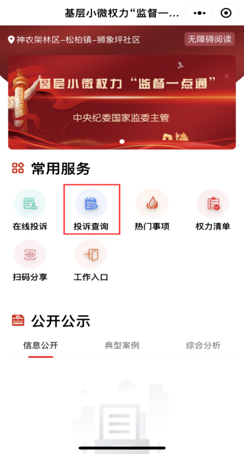 群众用户可在此模块下查询自己的投诉。