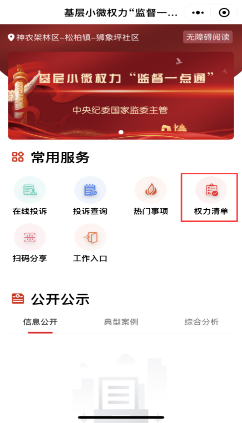 群众用户可查看本区域内的权力清单。