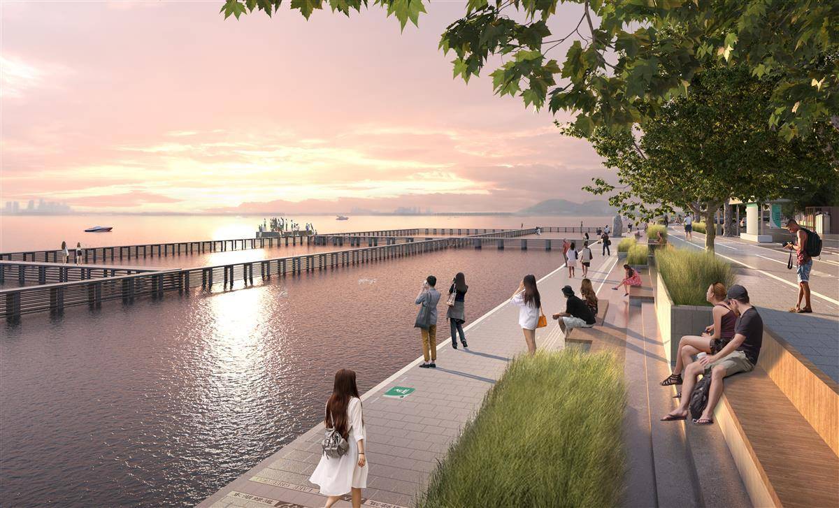 根据规划,东湖绿道三期沿线将建设11个各具特色的观湖平台,分别是:石矶长滩、放鹰台、渔火阑珊、水生所、试验站、洪波门、凌波门、平湖珞樱、天涯海角、碧波扬帆和一棵树。其中,平湖珞樱为绿道驿站,将建设樱花广场,与武汉大学建筑风格协调统一,提供休憩空间与便民服务。最受市民关注的凌波门,将适当拓宽临湖亲水平台,布置多级观湖台阶,保持原有东湖游泳场风貌,对水域铺砌进行优化,加固现有栈桥。