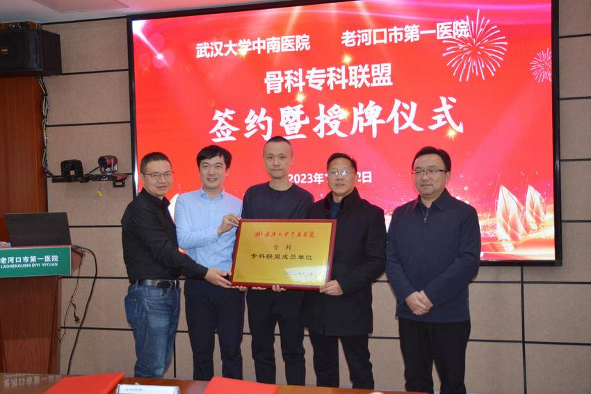 湖北日报客户端讯(通讯员彭雅兰、张坤)为进一步推进专科联盟建设,加快实现技术协作、资源共享、优势互补、联动发展,12月22日下午,武汉大学中南医院与老河口市第一医院骨科专科联盟签约暨授牌仪式隆重举行。