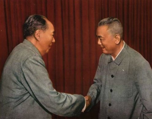 毛泽东与李先念握手。(资料图片)