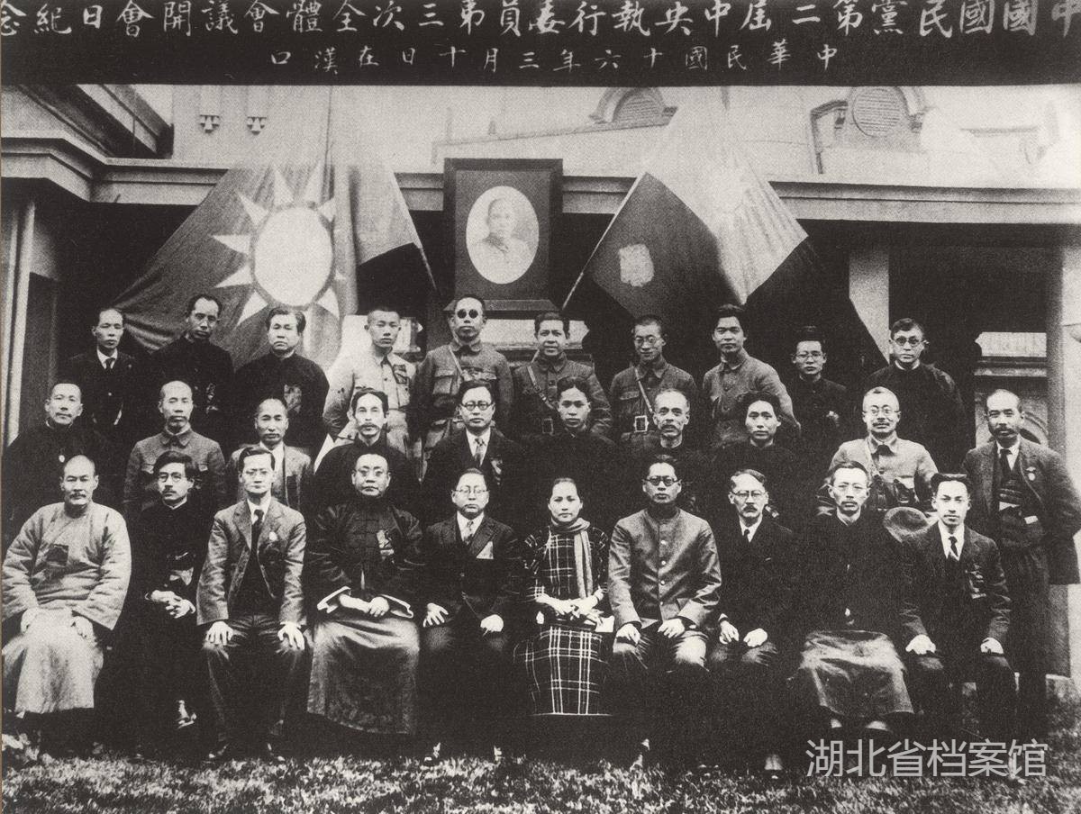1927年3月10日至17日,毛泽东与董必武在武汉共同出席国民党二届三中全会。图为会议期间与会代表在武汉国民政府大楼前合影。(湖北省档案馆供图)