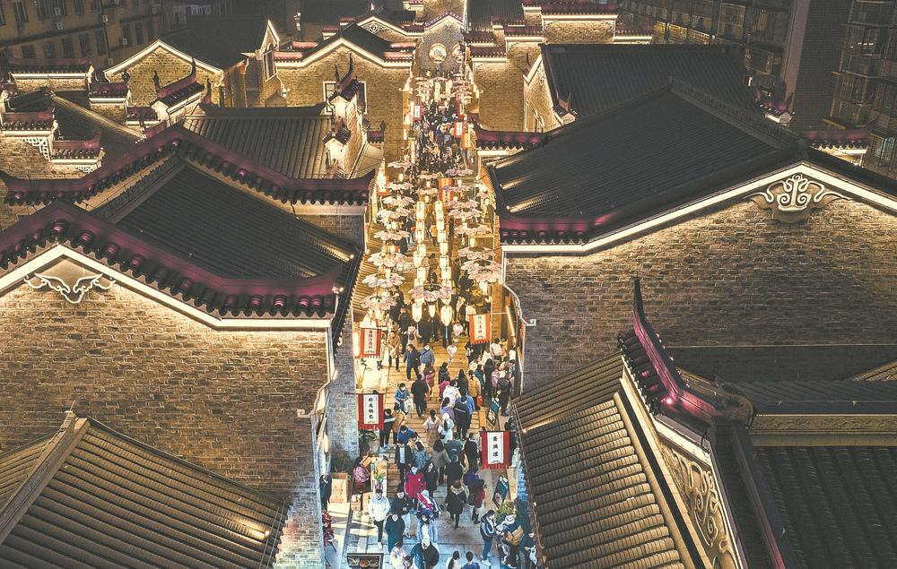 2023年12月30日,游人在管家巷文化休闲街区观赏夜景。 全媒体首席记者 杨东 摄