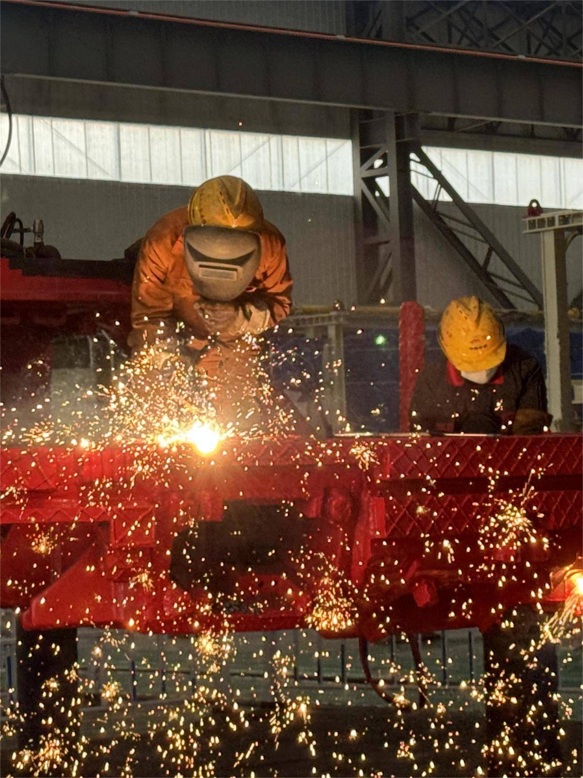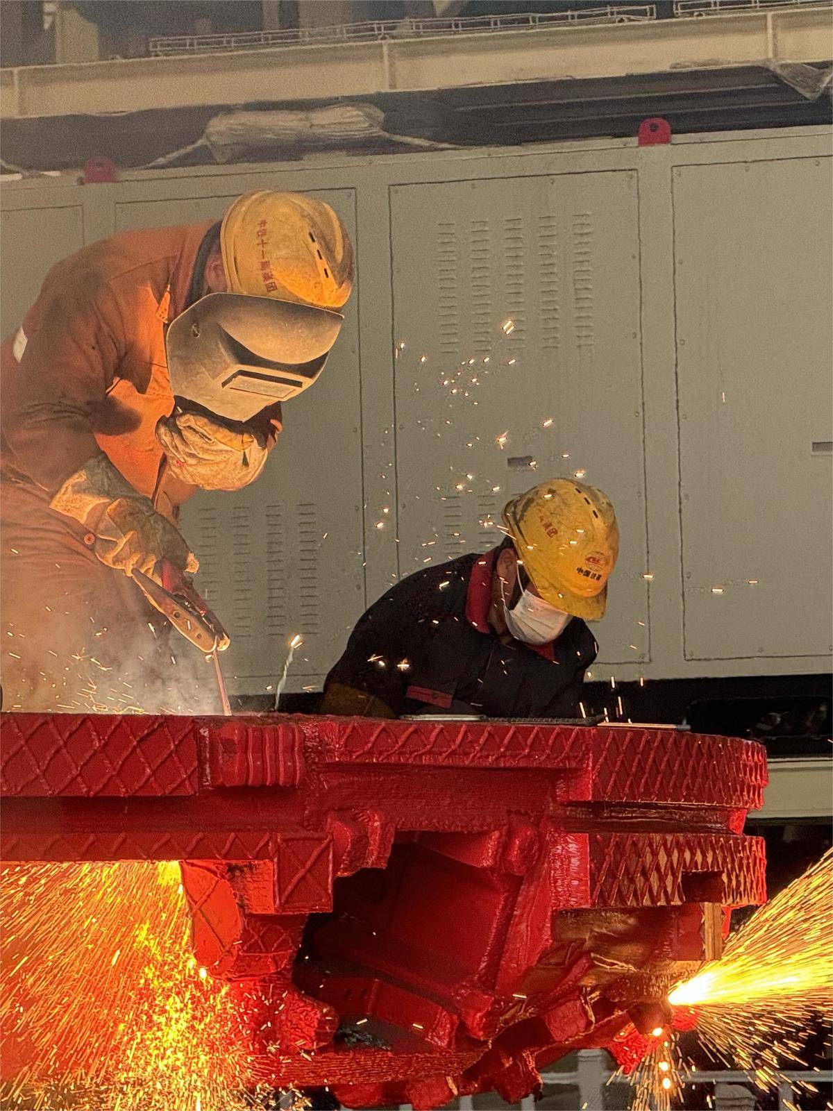 工人们正在焊接盾构机刀盘。(实习生 李清影 摄)