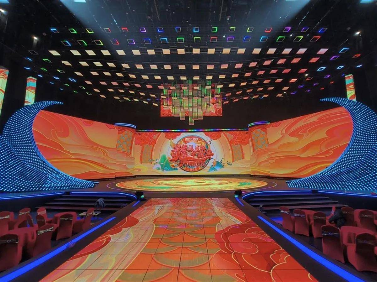 舞美方面,湖北卫视龙年春晚在最新投用的2000平方米演播厅进行录制,晚会舞美团队将充分运用先进科技,打造光影交织的舞台。春晚舞台与视觉的AR、XR技术融合,不仅为舞台增添了奇幻和创意,还让观众拥有全景沉浸式的观感。