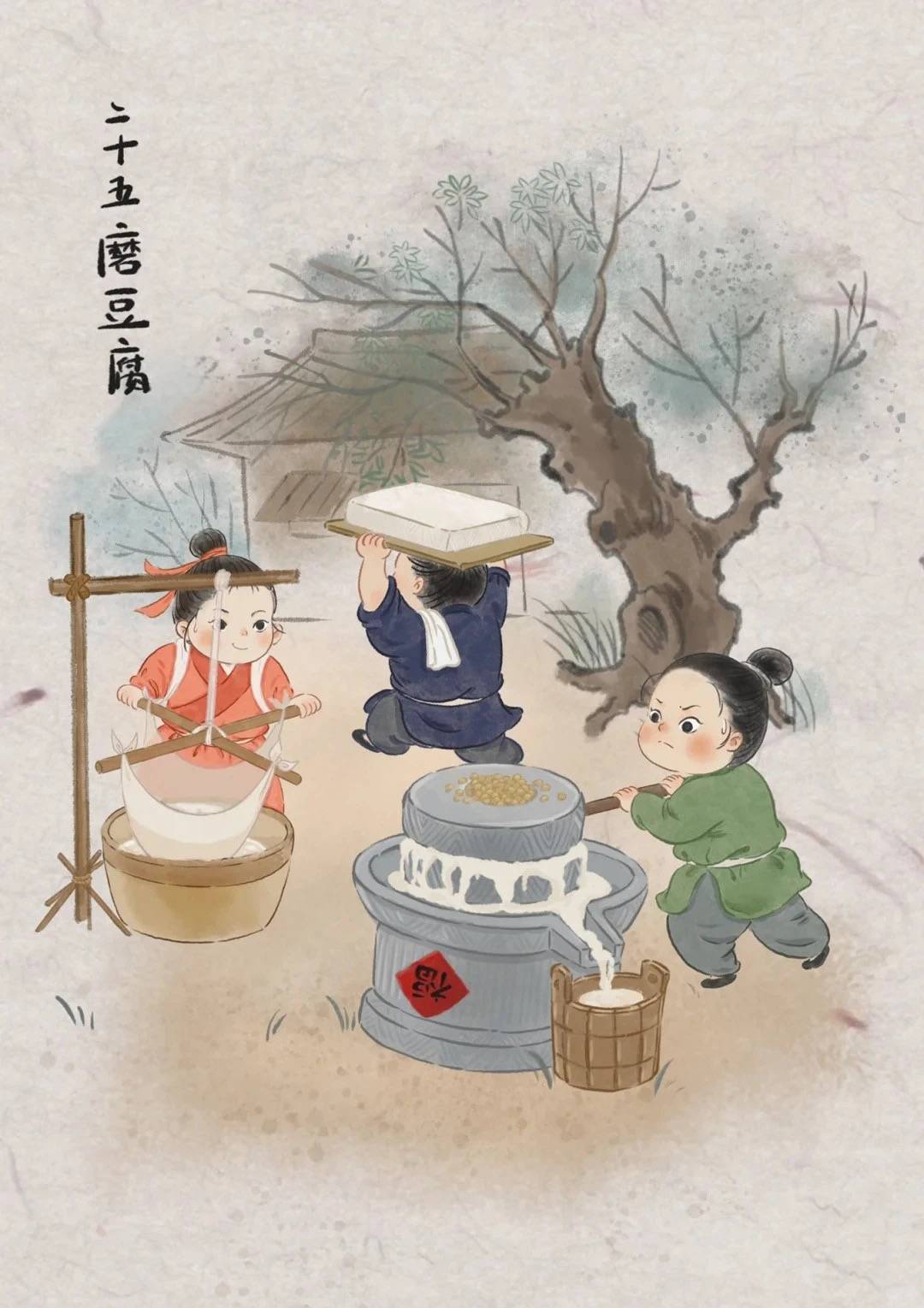 “腊月二十五,推磨做豆腐”