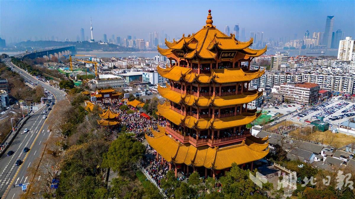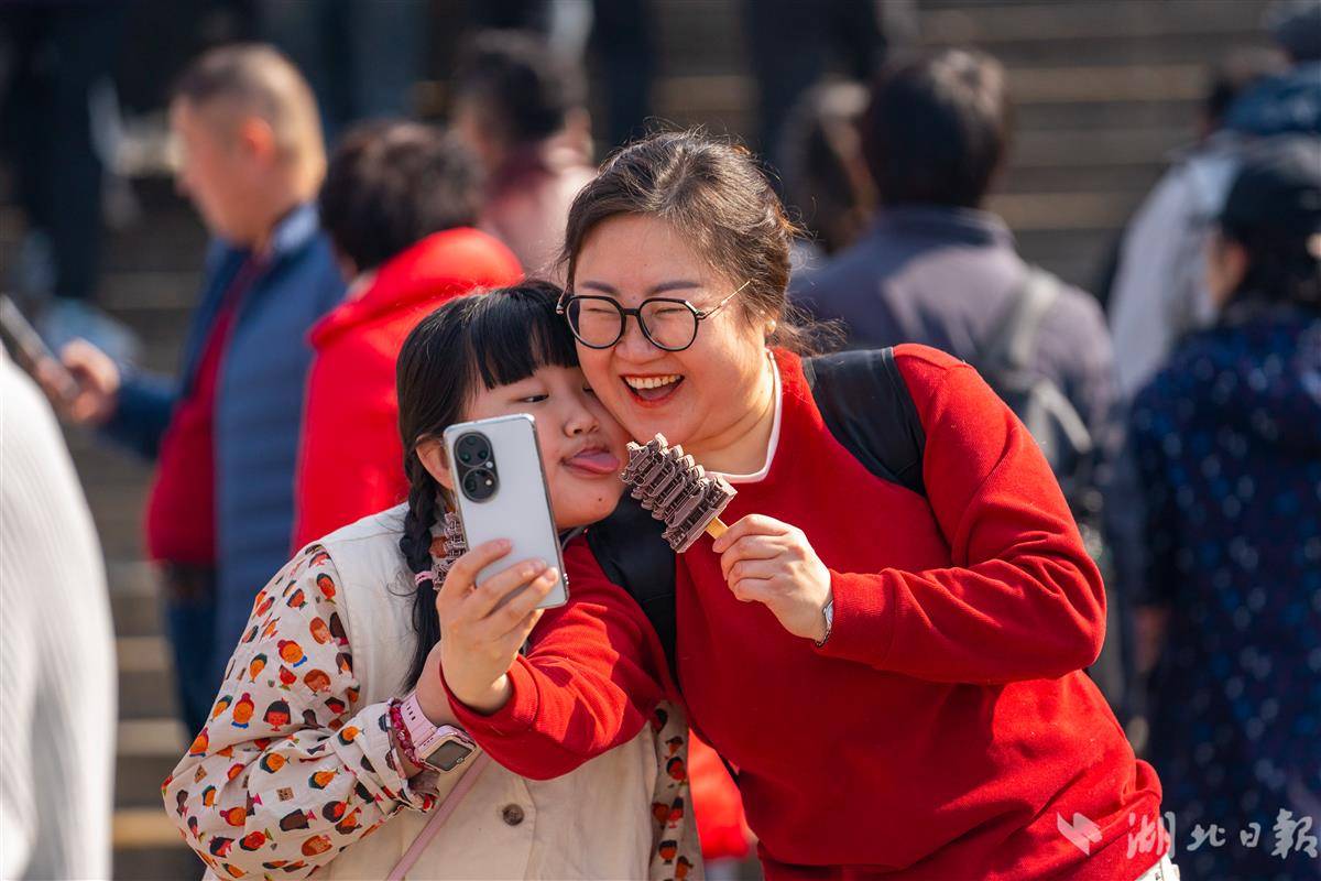 2月11日,大年初二,武汉市热门景区黄鹤楼公园,景区检票口排起长队,人气爆棚。许多外地游客或携儿带女,或老友相伴,争相在黄鹤楼前打卡拍照。春节期间,黄鹤楼年味十足,游客们登高赏景,还能观看汉剧、舞龙舞狮等演出,并体验传统猜灯谜活动。据悉,截至当日17时,景区接待入园游客已达41065人。