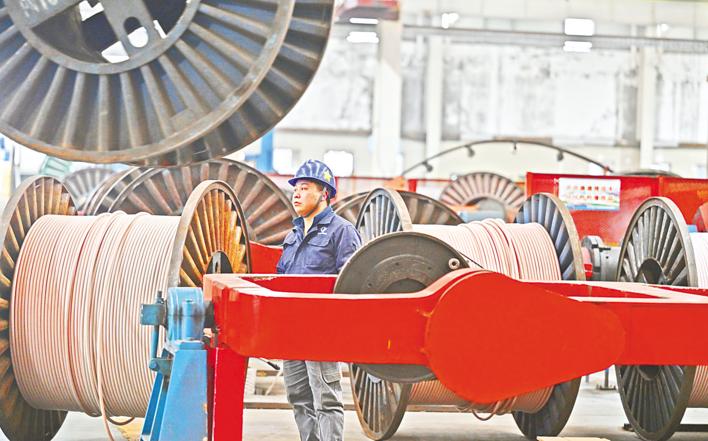 2月19日,宜昌起帆电缆有限公司车间内一派繁忙红火的景象,一根根电缆加速“生长”,不远处,大大小小、绕满电缆的轮盘井然有序排列。 (湖北日报全媒记者 刘曙松 通讯员 谭雪姣 摄)