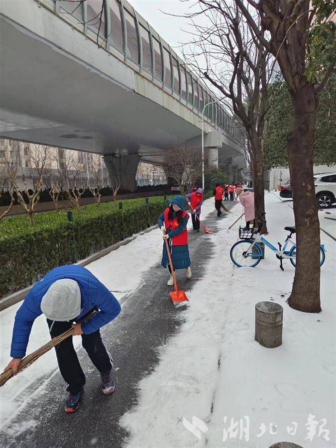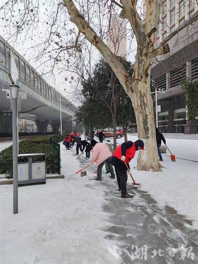 湖北日报讯(记者包东喜、通讯员曹晖、杜锋)近日,武汉市迎来新一轮雨雪冰冻天气,造成道路积雪结冰,湖北省地震局党员干部职工以雪为令、迎寒而上,继2月3日-7日连续5天开展扫雪铲冰、清理断落树枝志愿服务活动后,再次组织扫雪除冰志愿服务活动,保障职工群众安全出行和生产生活正常运行,为共建平安单位贡献力量,展现了新年新气象。