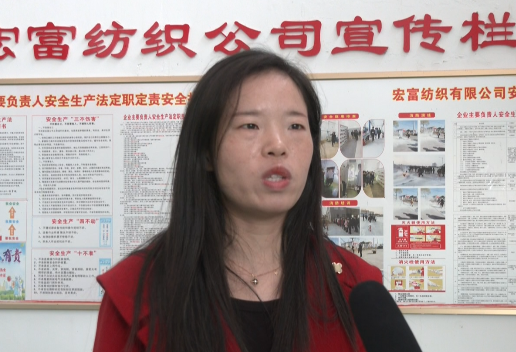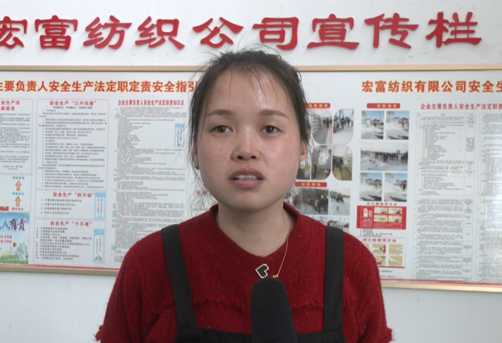 挡车工 李小争:在宏富工作也好多年了,这边工资各方面待遇比较好一点。