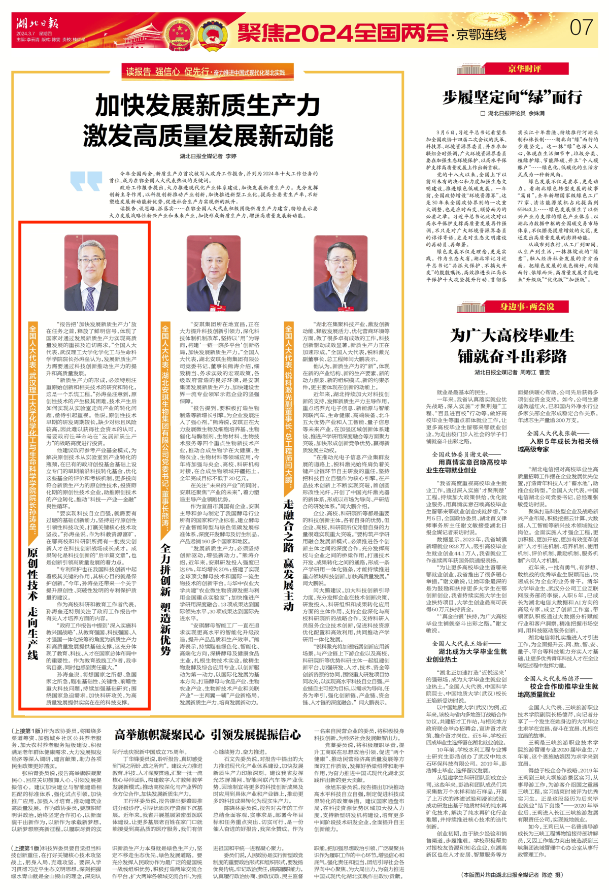 “政府工作报告中提到‘深入实施科教兴国战略’,从教育强国、科技强国、人才强国一体化统筹的角度为新质生产力和高质量发展提供基础支撑,这充分体现了教育、科技、人才在国家总体布局中的重要性。作为教育战线工作者,我非常自豪,同时也感到责任重大。”