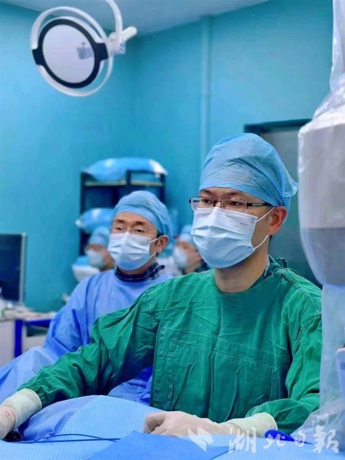 当天,在另一间手术室,一名50岁的冠心病、急性非ST段抬高型心肌梗塞患者由武汉大学中南医院心血管内科刘心甜博士“操刀”为其进行双支架植入手术。术后,张先生意识障碍、右侧肢体偏瘫明显好转。