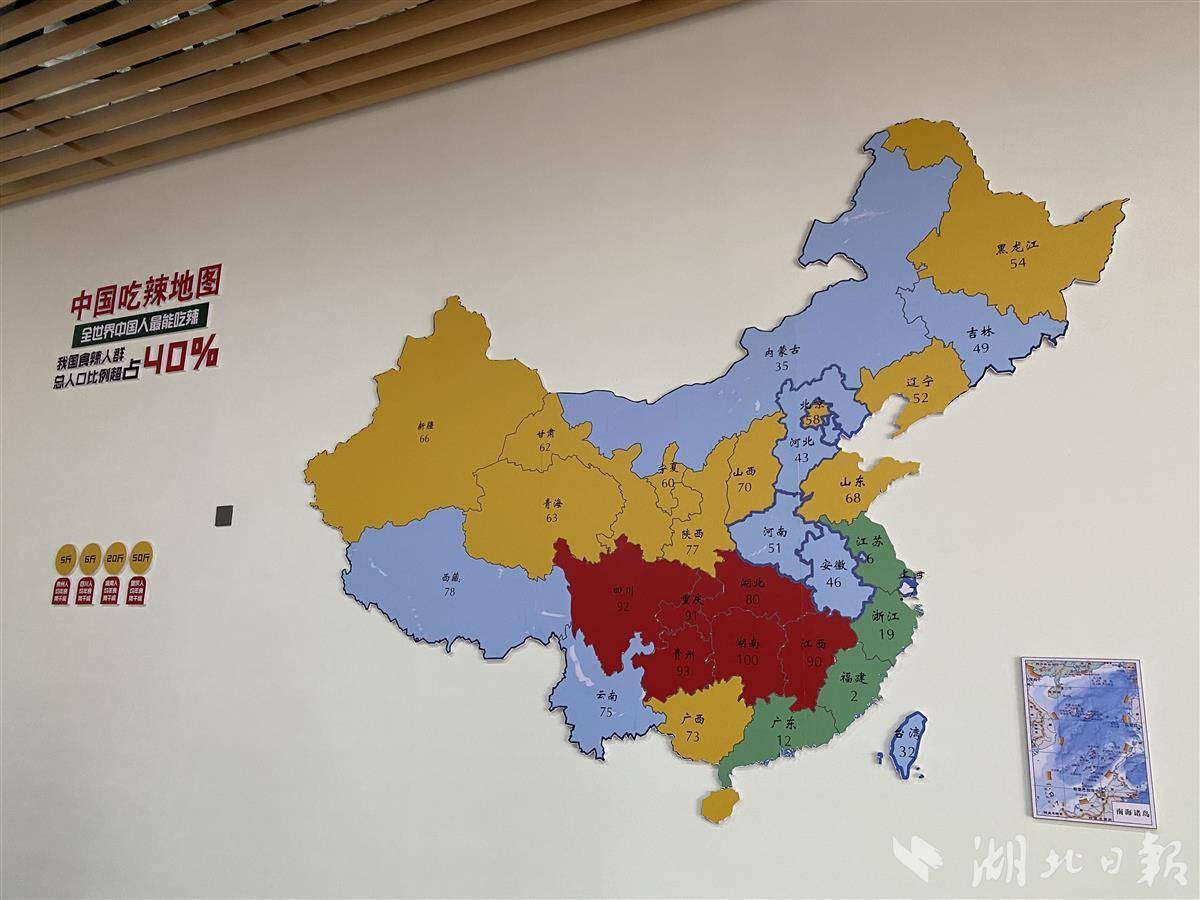 “辣交所”展示墙上,一张“中国吃辣地图”引人注目——我国食辣人群总人口占比超40%。其中,湘鄂赣、川渝和贵州被标为鲜红色,系中国最能吃辣的地区。