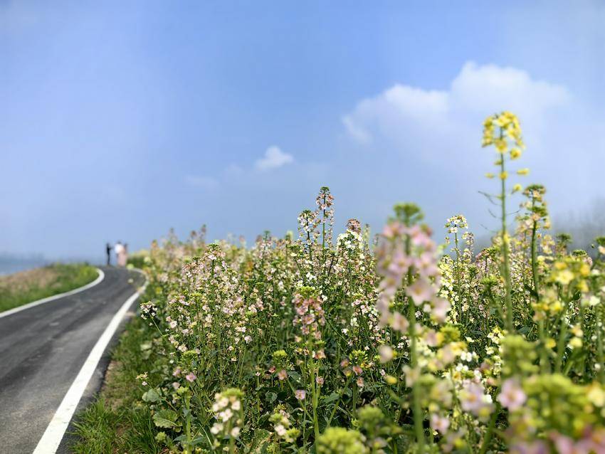 迎着春日的暖阳,我们沿着长江故道,踏上了这段长约3公里的油菜花田。为了便于游人赏花,当地老百姓绕花田修建了宽1.8米的观光柏油路。花田旁的长江故道宛如一条蜿蜒的丝带,河水泛着淡淡的波纹,静静地横卧其中。它与周围的田野、花朵和蓝天相映成趣,构成了一幅美丽的画卷。