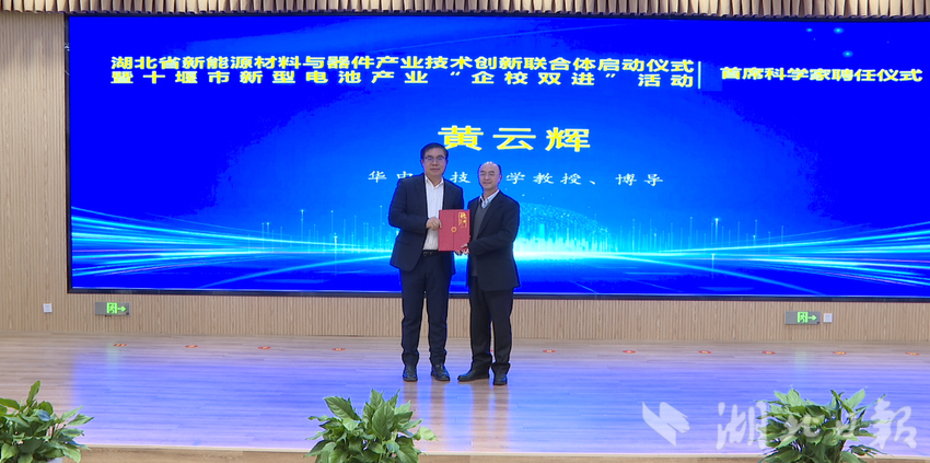 当日,华中科技大学教授、博导黄云辉应聘为湖北省新能源材料与器件产业技术创新联合体首席科学家。联合体牵头单位湖北万润新能源科技股份有限公司与华中科技大学和湖北汽车工业学院分别签订合作协议。