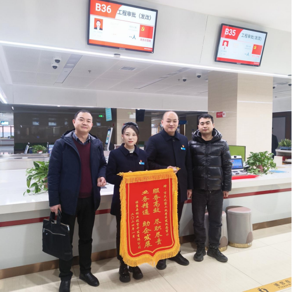 湖北日报客户端讯(通讯员潘雯)“我们着急办理项目审批手续,以为需要一段时间走程序,没想到通过前期电话咨询准备好了相关资料,过来一会儿就办完了,感谢你们对公司的鼎力支持,使我们的工作可以顺利开展。”近日,在保康县市民之家二楼保康县发改局政务服务窗口,保康县林业投资开发有限公司送来一面印有“服务高效、尽职尽责、业务精通、助企发展”的锦旗,对保康县发改局工作人员在办理该企业项目审批过程中,热情周到、便捷高效的服务表示衷心感谢。
