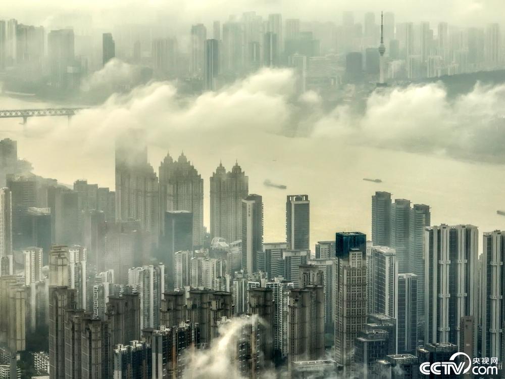 2024年4月1日,武汉出现平流雾景观,高楼建筑云雾中若隐若现,如梦如幻。视觉中国