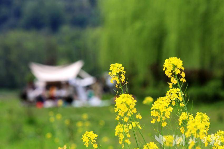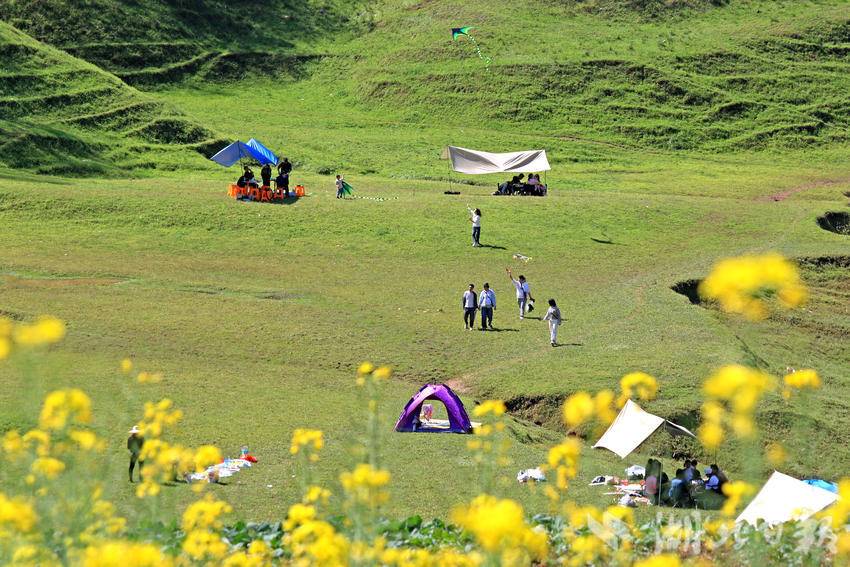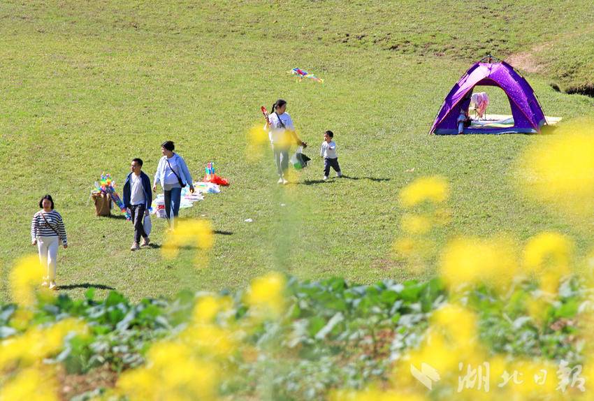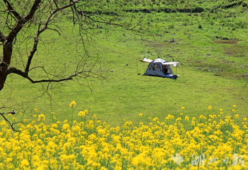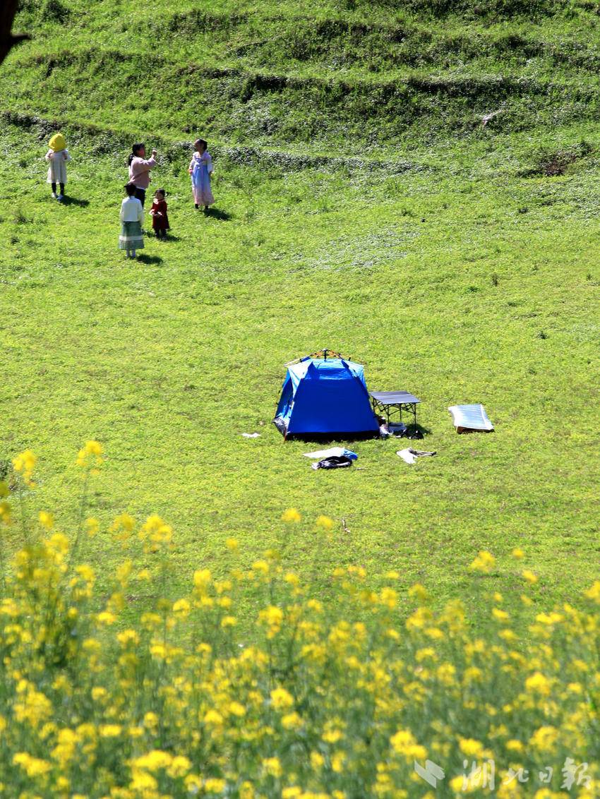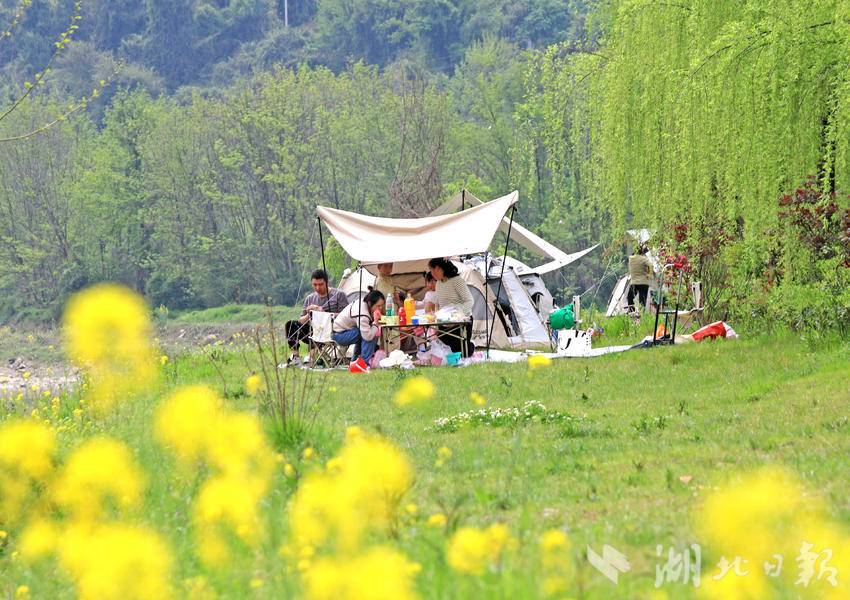 湖北日报客户端讯(通讯员谭华)3月31日,春光明媚,人们来到恩施市白杨坪镇能家岩鳝孔坝湿地,踏青游玩,露营野餐。