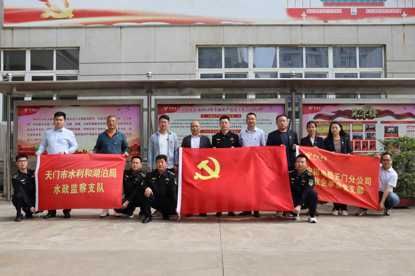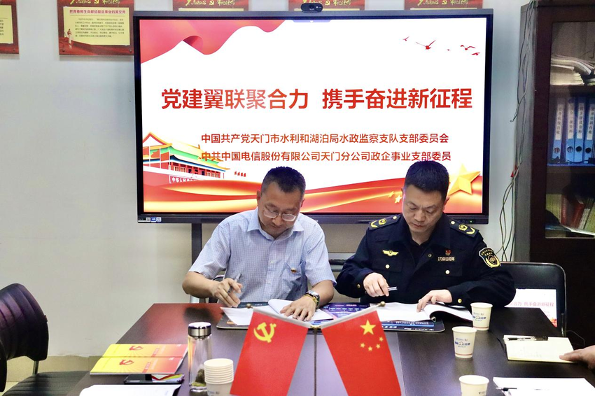 湖北日报客户端讯(通讯员 邹志亚 钱娟)为探索“共建共促、资源共享、优势互补、合作共赢”的基层党建共建工作新模式,4月1日,中共天门市水利和湖泊局水政监察支队党支部联合中共中国电信股份有限公司天门分公司政企事业支部委员会,开展了以“党建翼联聚合力 携手奋进新征程”为主题的支部主题党日活动,并举行党建共建活动签约仪式。