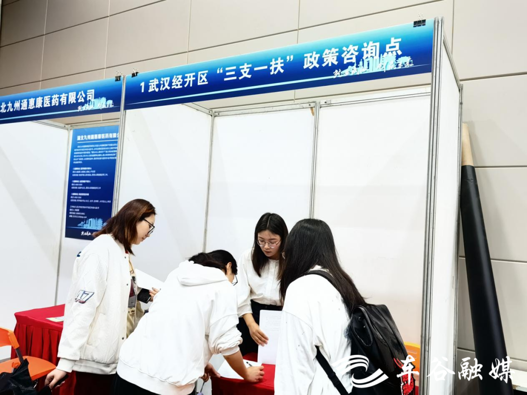 为引导和鼓励高校毕业生服务基层、扎根基层,此次招聘现场特设武汉经开区“三支一扶”政策咨询点,向学生们详细介绍湖北省“三支一扶”计划的招募程序、对象,以及“三支一扶”人员服务期间和服务期满后可享受的优惠政策等。