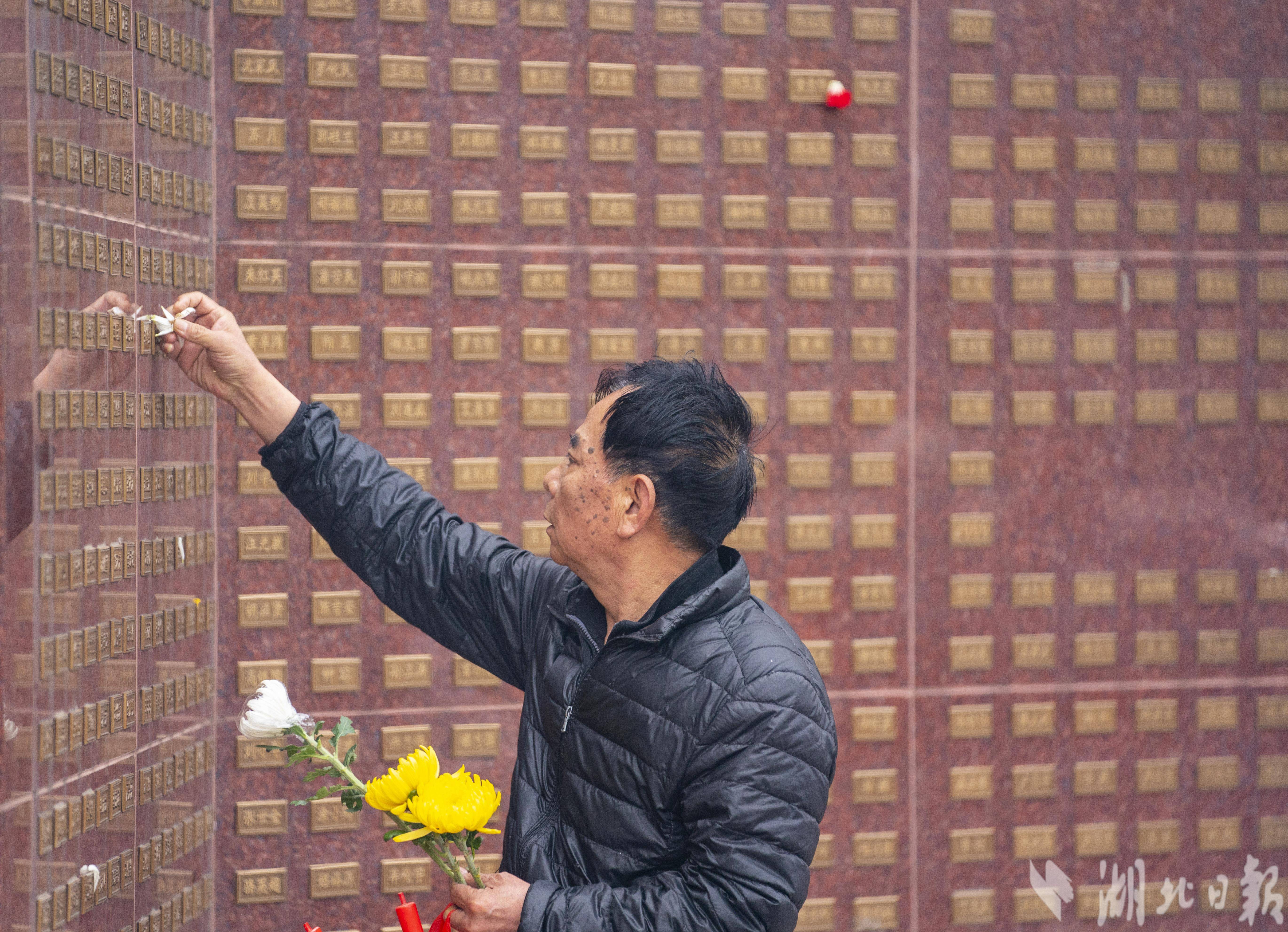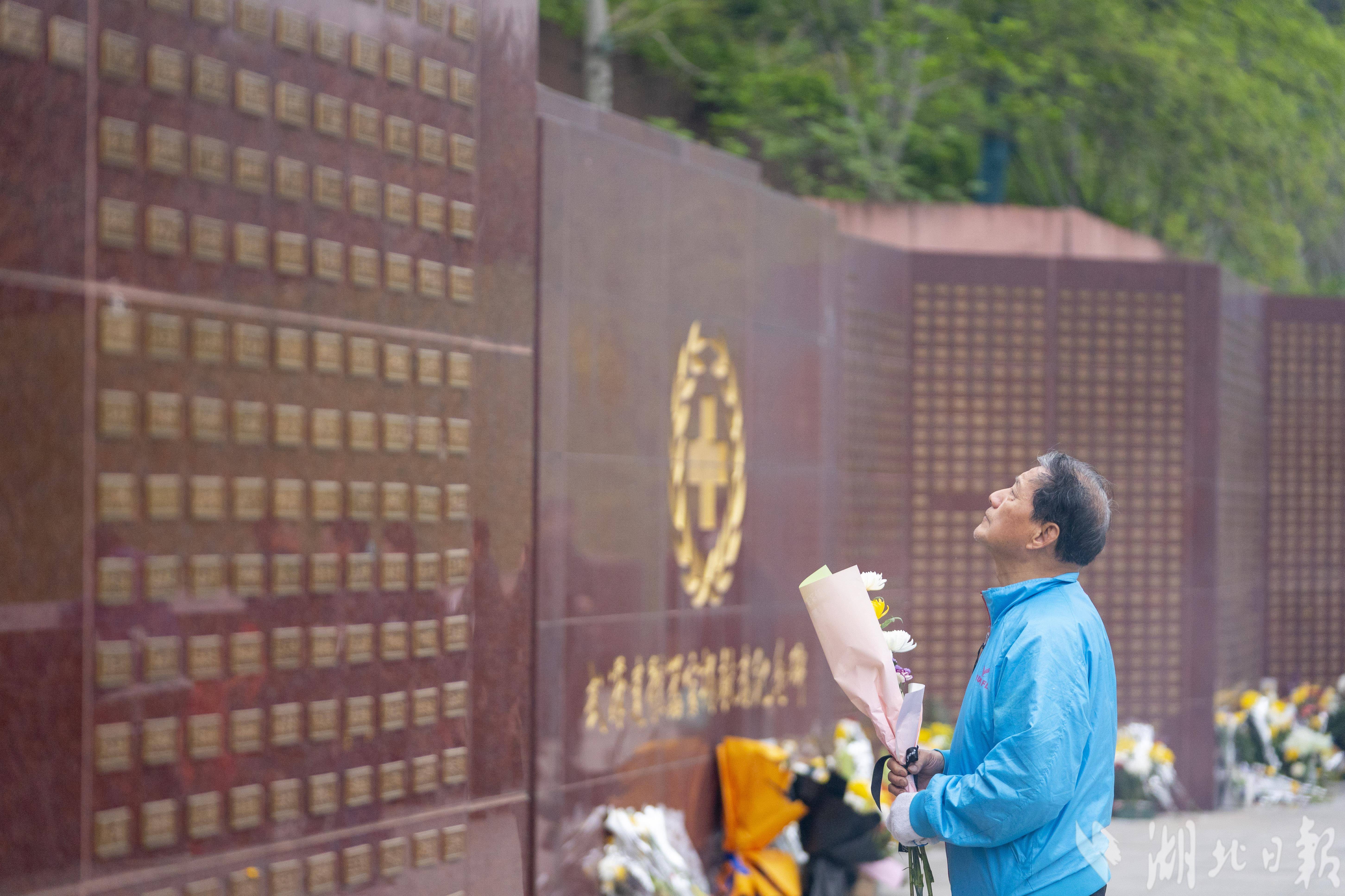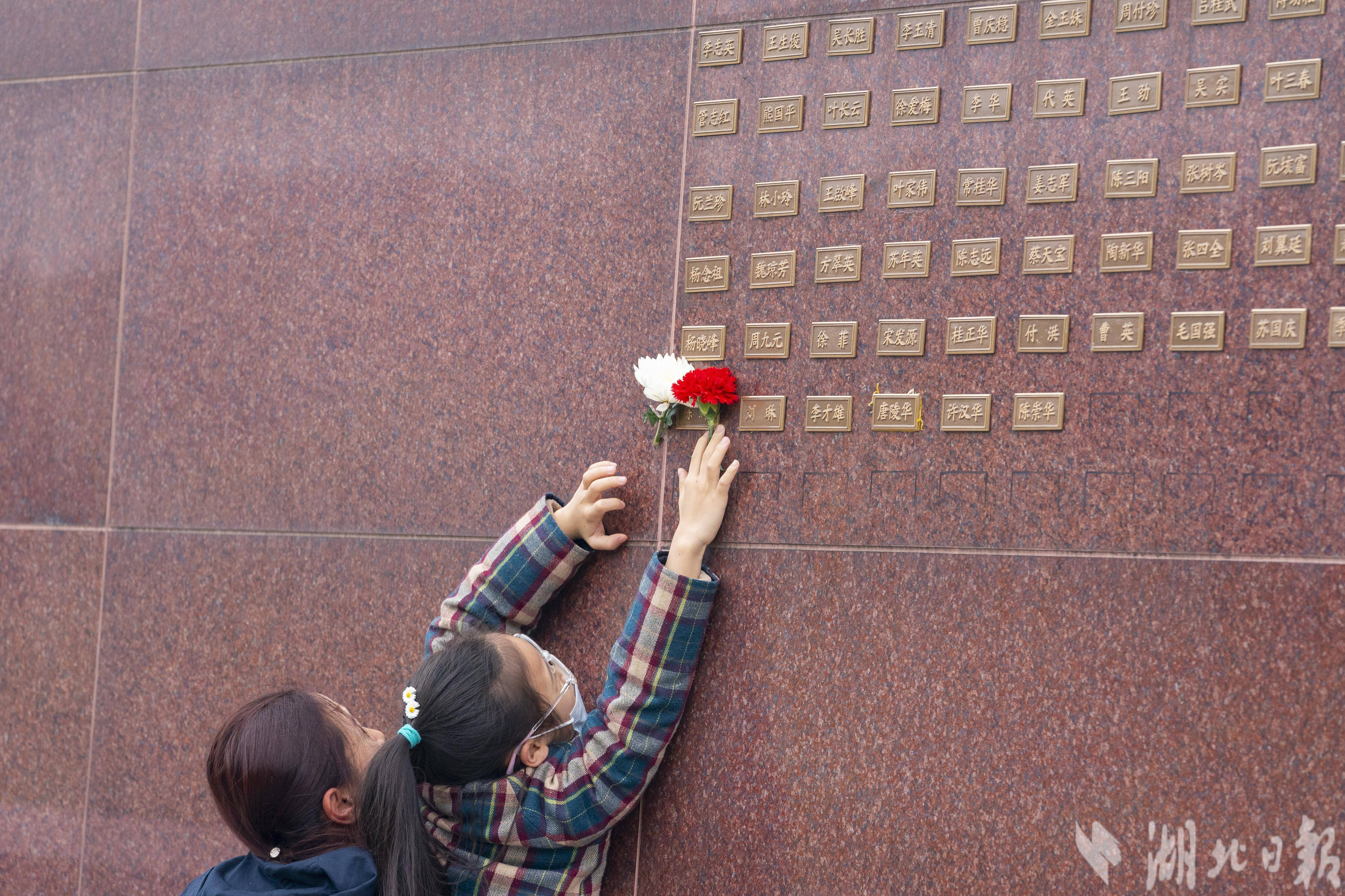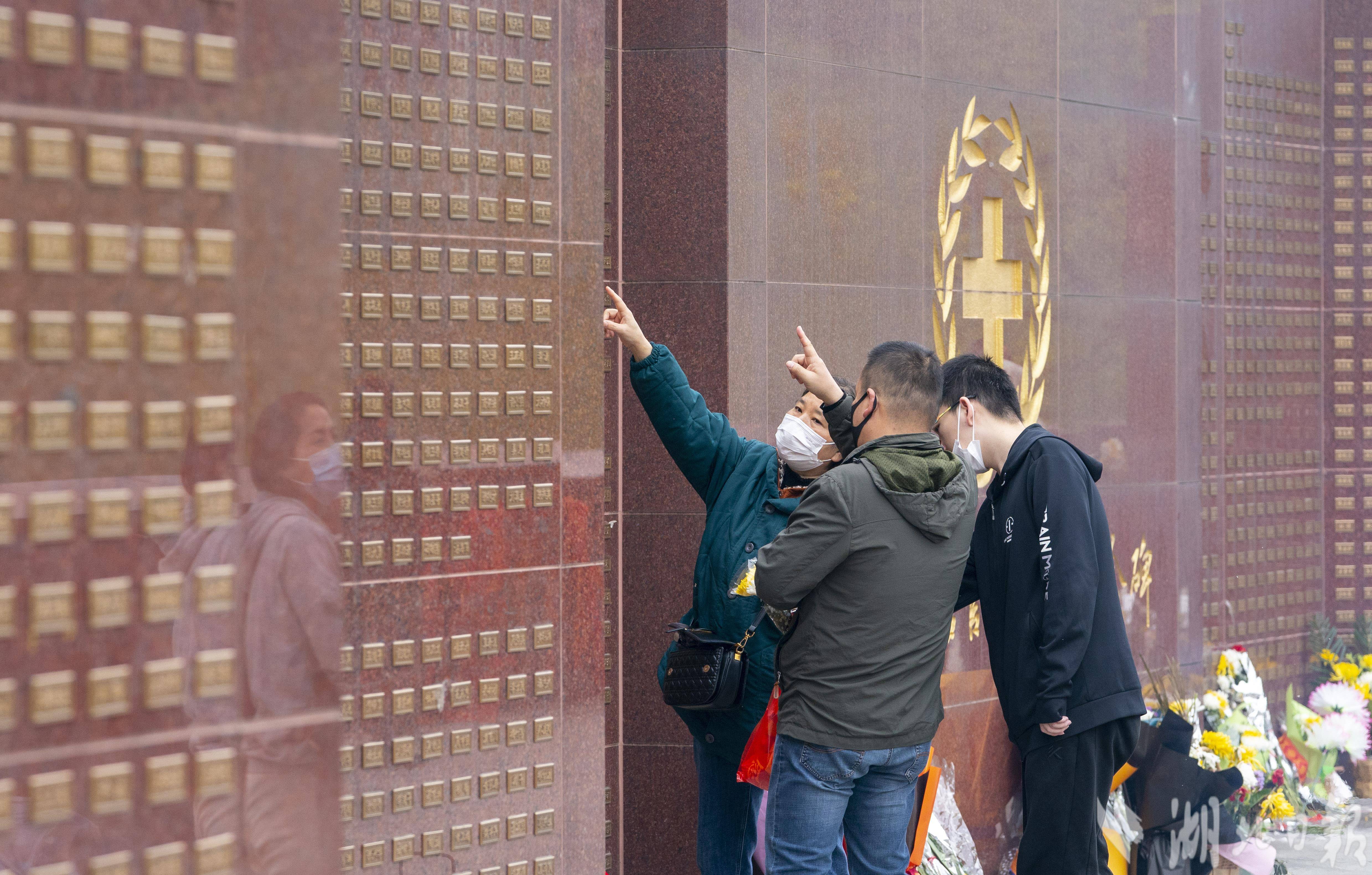 4月4日,清明节当天,武汉市石门峰纪念公园内的武汉遗体器官捐献者纪念碑广场,捐献者家属和自发市民在纪念碑前,缅怀逝去的亲人,向捐献者默哀致敬。