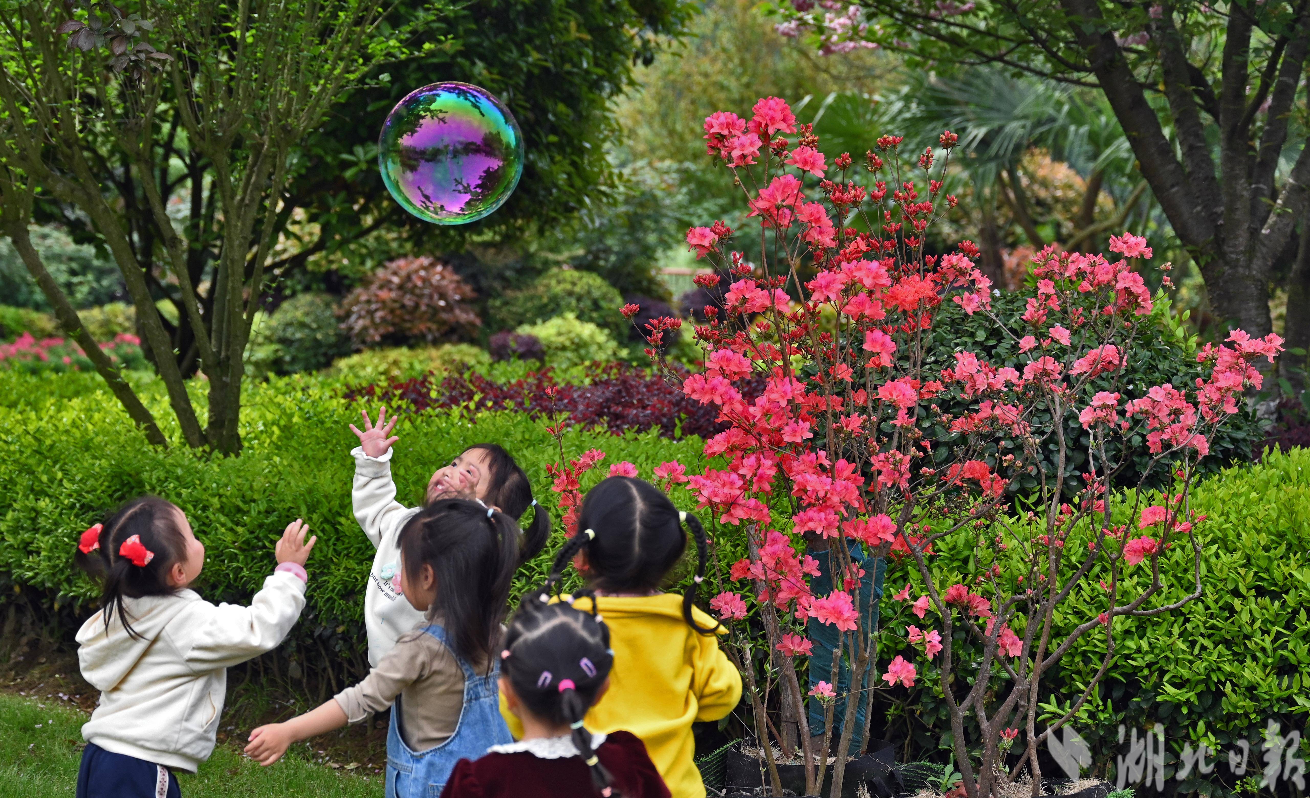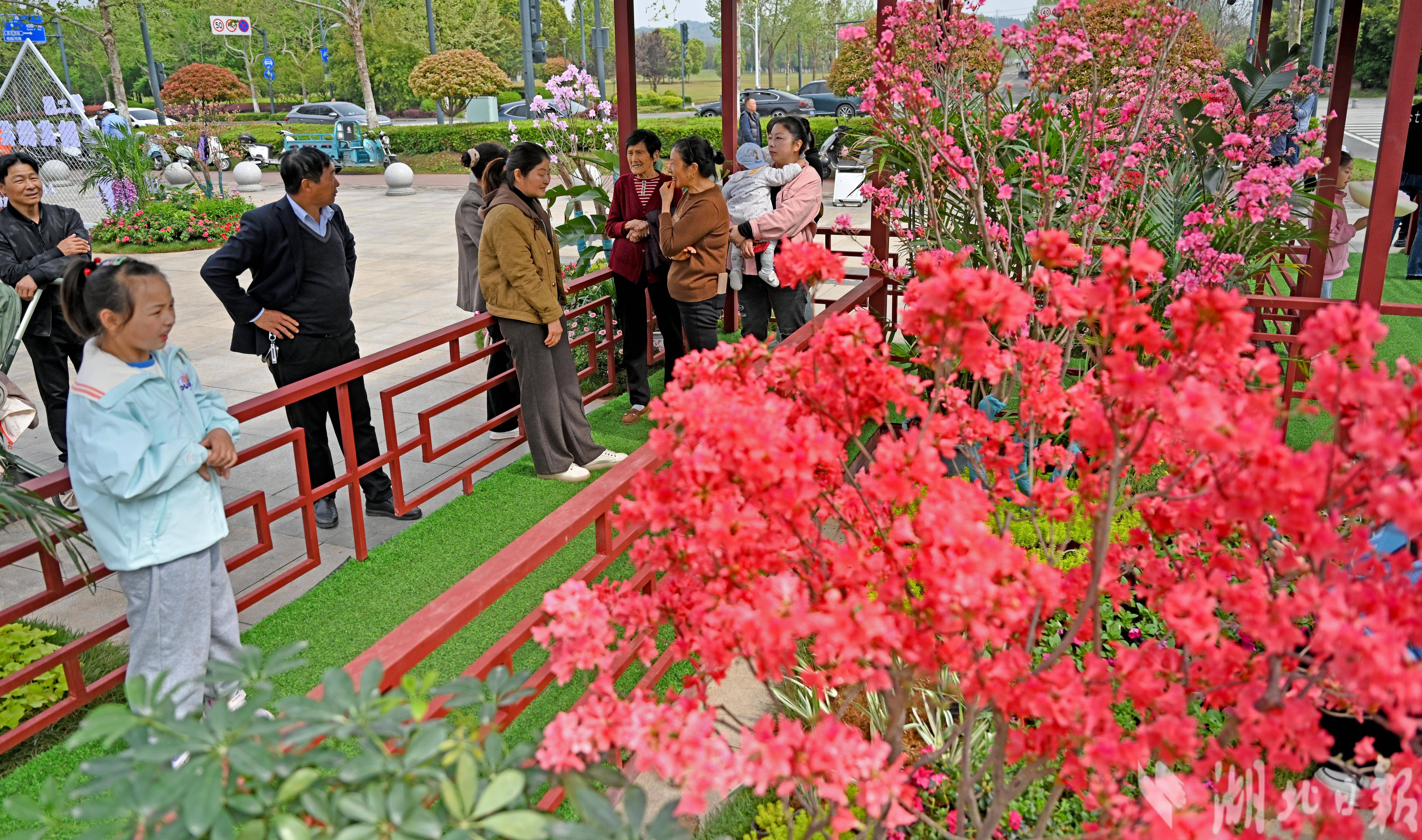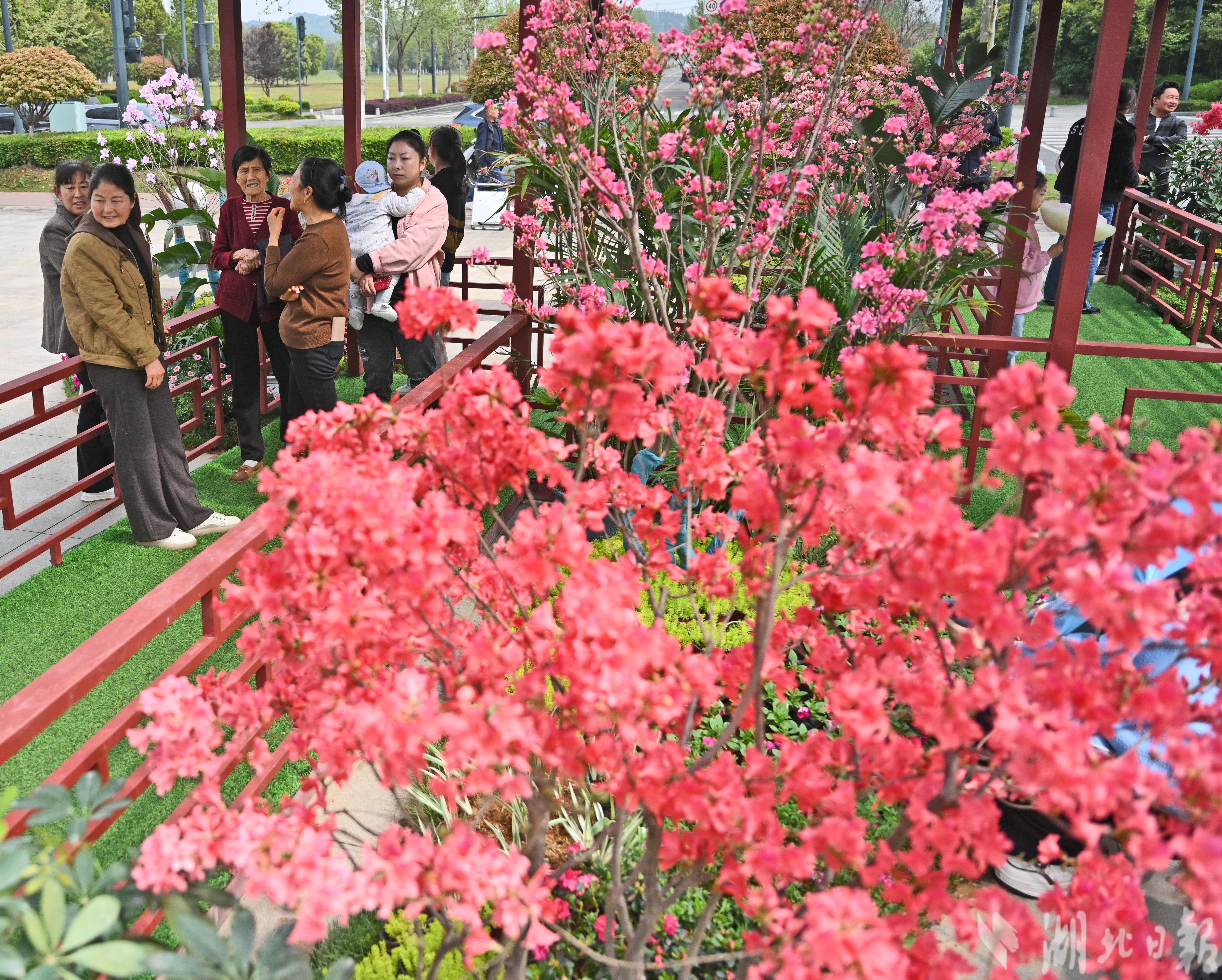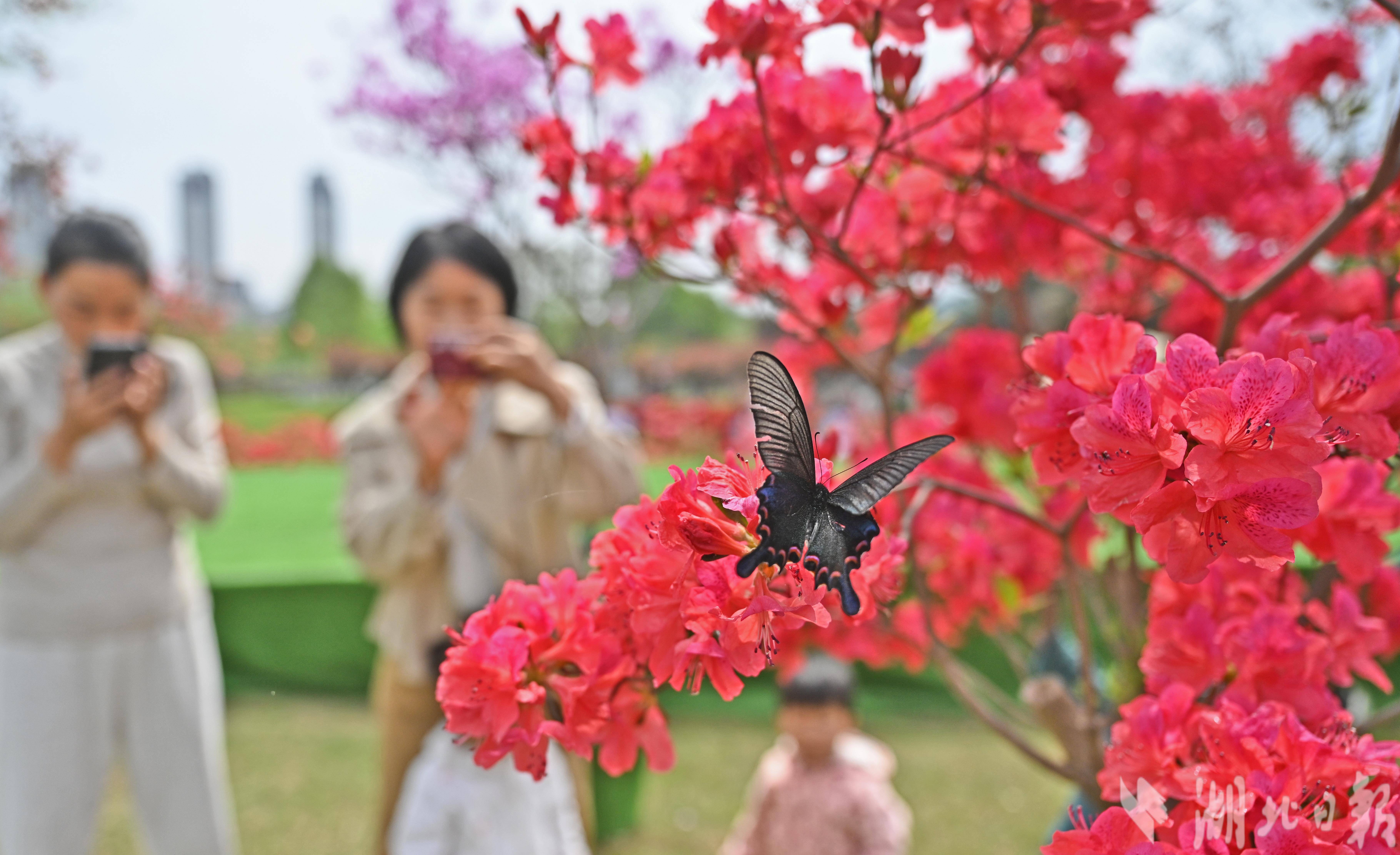 当地在湿地公园举办杜鹃花展,红粉佳人、萨特、玛丽塔、红丝带、鸳鸯锦、西玛杜鹃、红皇冠、绿色光辉、映山黄等45种名贵品种的杜鹃花将湿地公园妆点一新,成为市民踏青赏花的打卡地。据悉,本次花展展期将持续至四月底。(湖北日报全媒记者 刘曙松 摄)