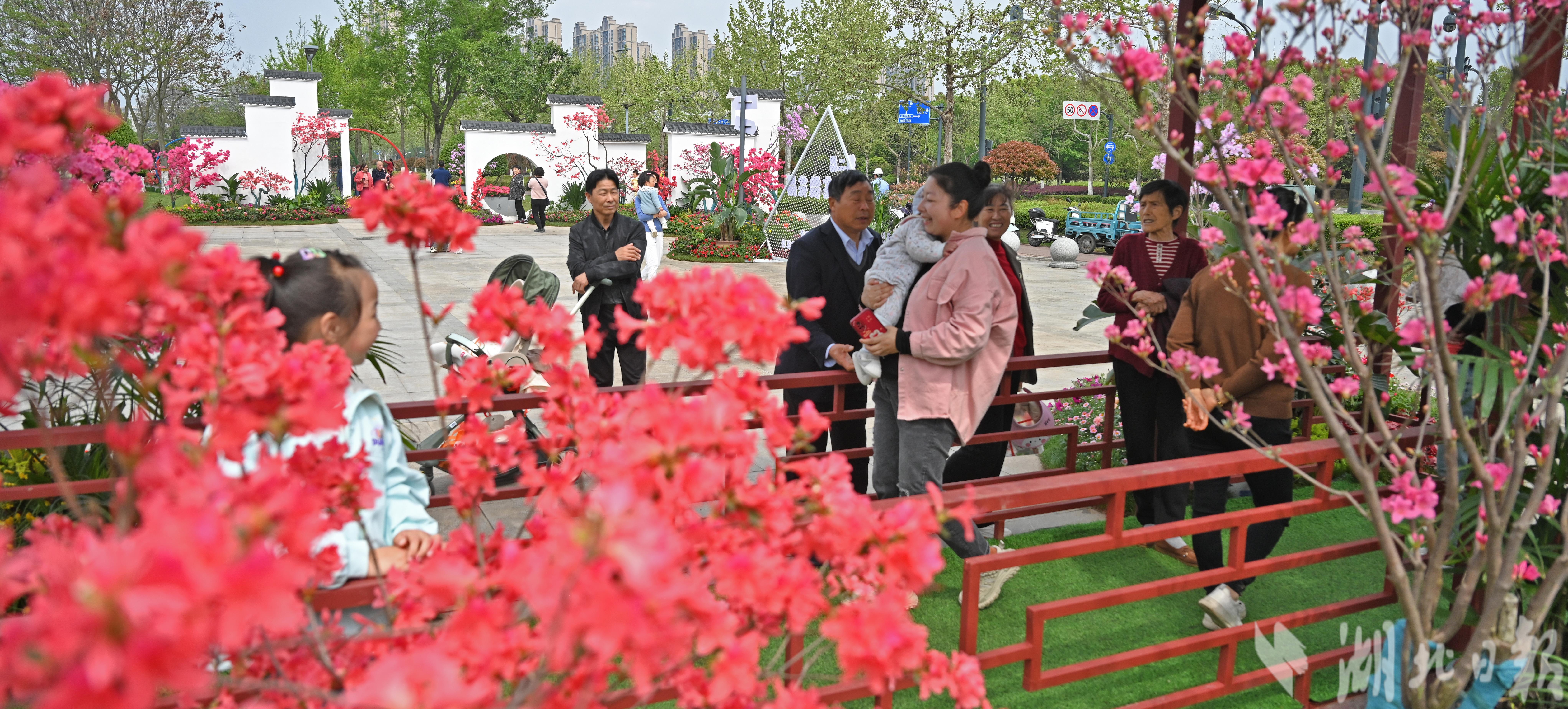 4月6日,宜昌市民纷纷来到柏临河湿地公园,欣赏迎春怒放的杜鹃花。