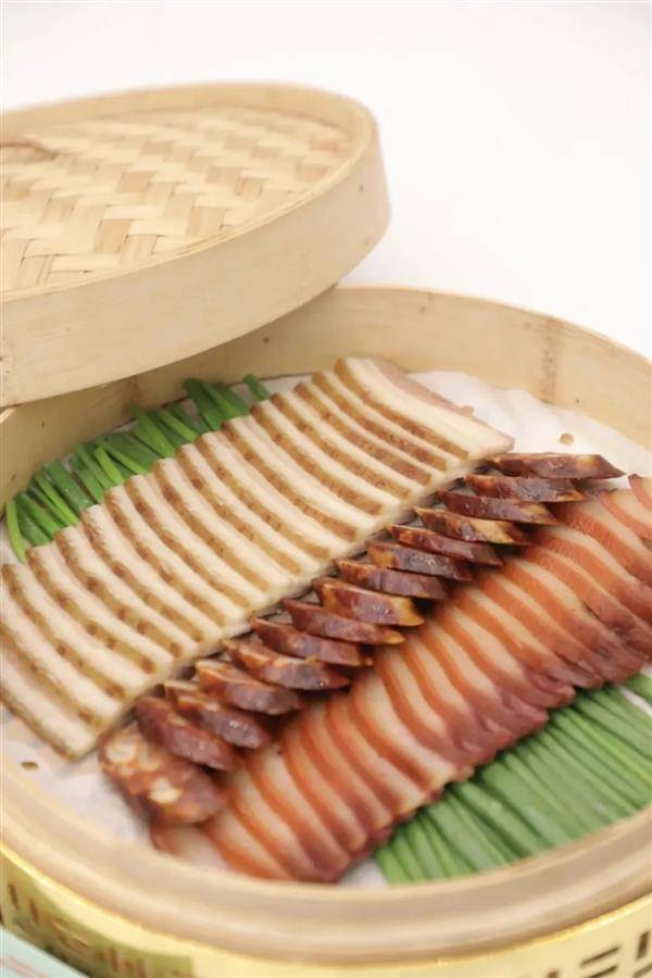 土家腊味合蒸由腊香肠、腊五花肉、腊猪肝各蒸而成,是宜昌土家族地区一道传统美食。