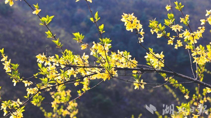 湖北日报客户端讯(通讯员陈晨)眼下,在湖北省十堰市郧阳区大柳乡,10万亩连翘花迎风绽放,漫山遍野的黄色花朵在枝头摇曳。连翘果制药、连翘叶制茶,天然野生连翘成为大柳乡群众增收致富的好产业。